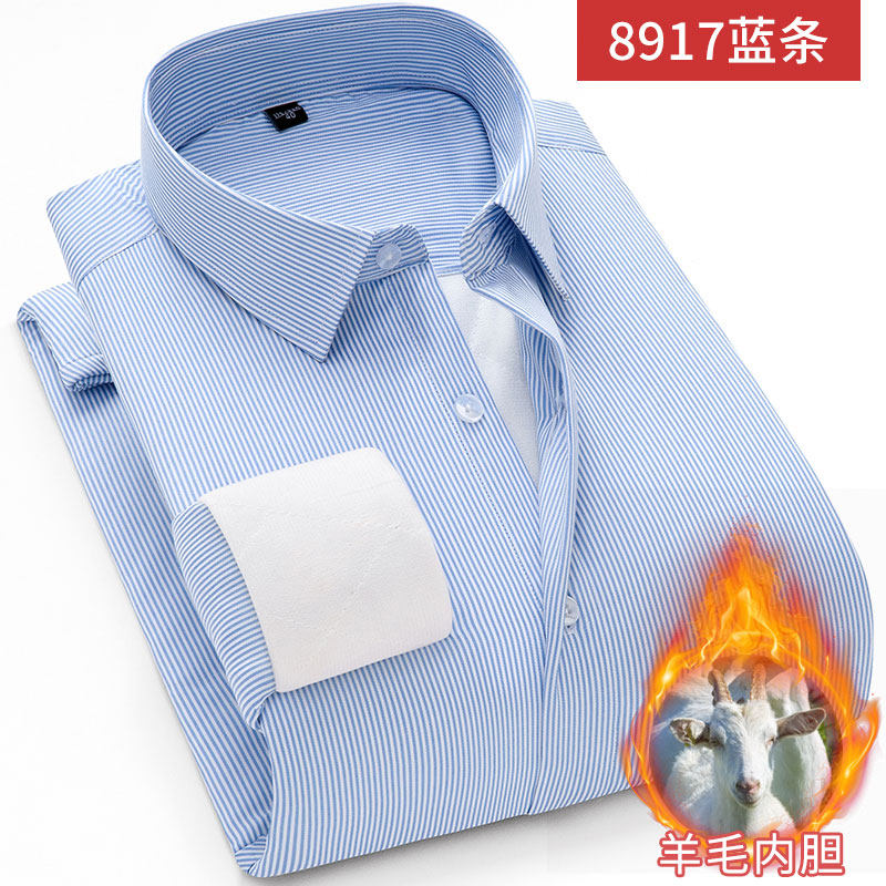 羊毛保暖衬衫男加绒加厚冬季商务正装修身青年休闲免烫衬衣男长袖