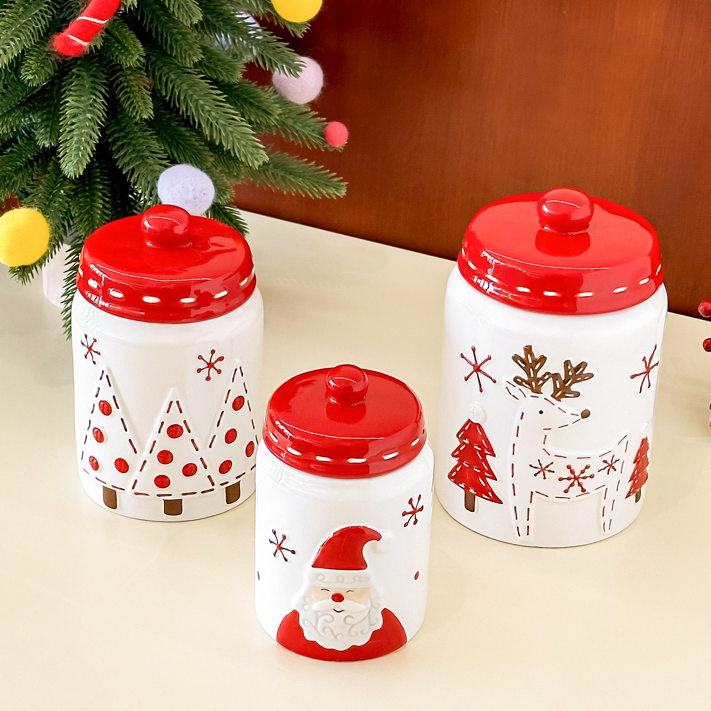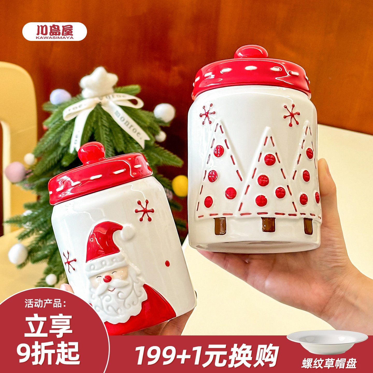 川岛屋圣诞密封罐可爱礼物糖果零食白糖茶叶收纳陶瓷储存储物罐子