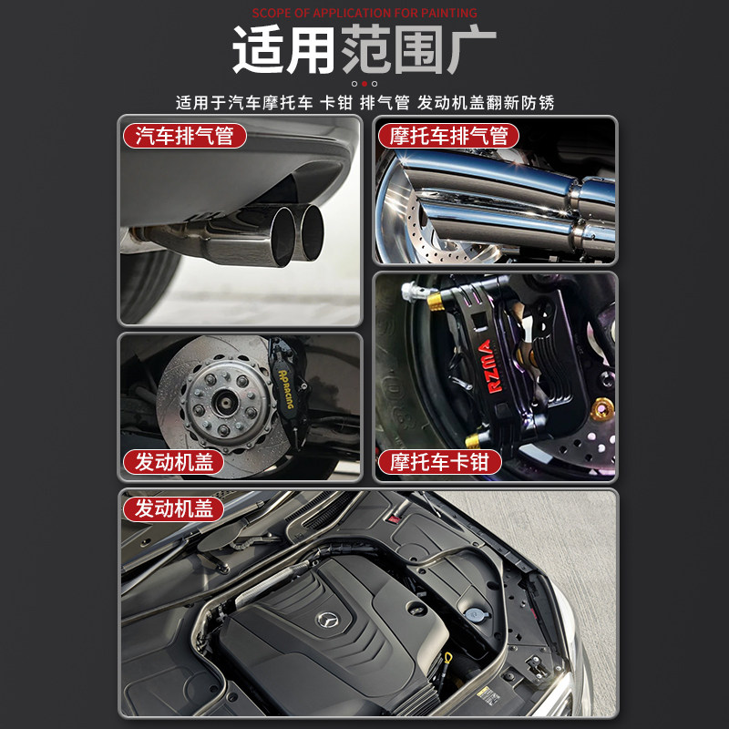 耐高温自喷漆摩托车排气管排气筒800度汽车卡钳黑色防锈油漆2000