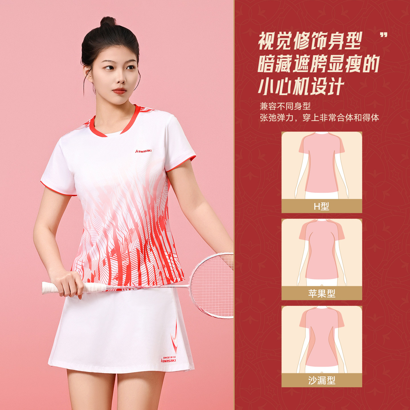 kawasaki川崎专业男女羽毛球服比赛套装速干衣运动短袖T恤短裤裙