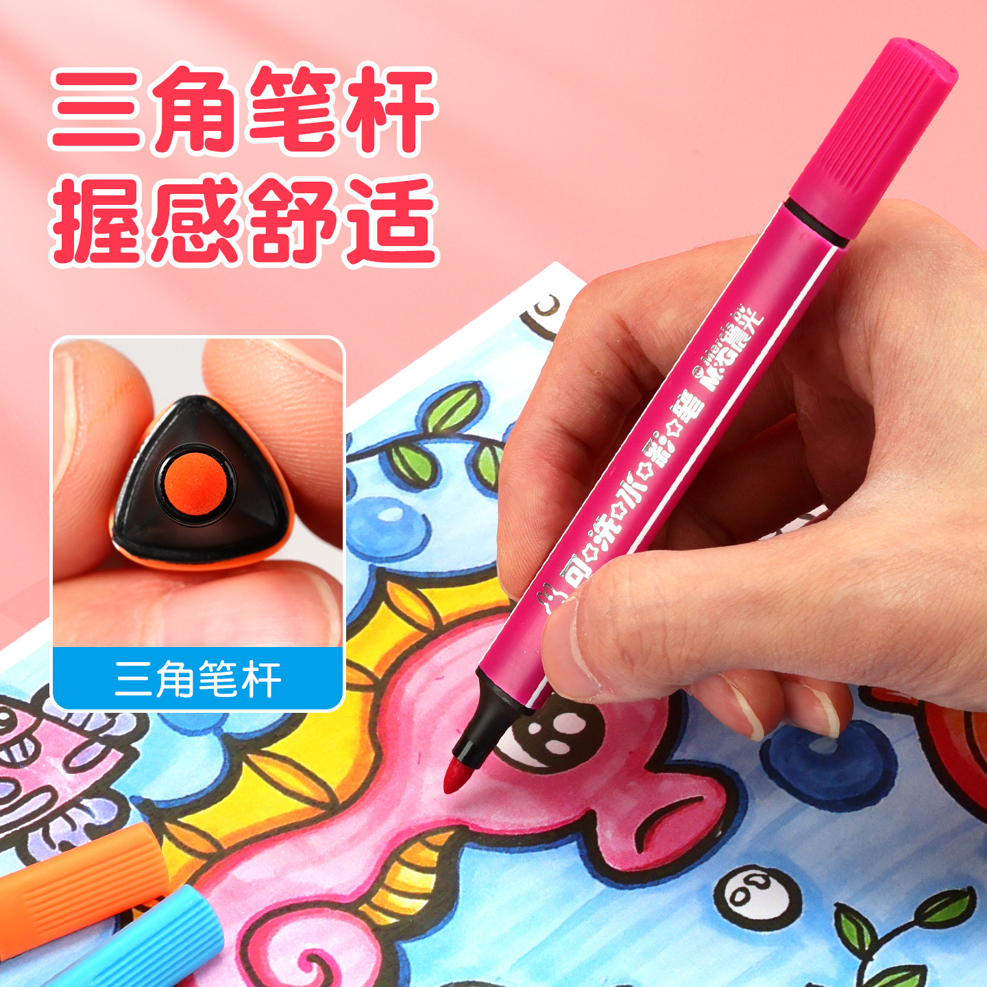 晨光易可洗水彩笔儿童可水洗无毒小学生幼儿园专用三角杆彩色画笔
