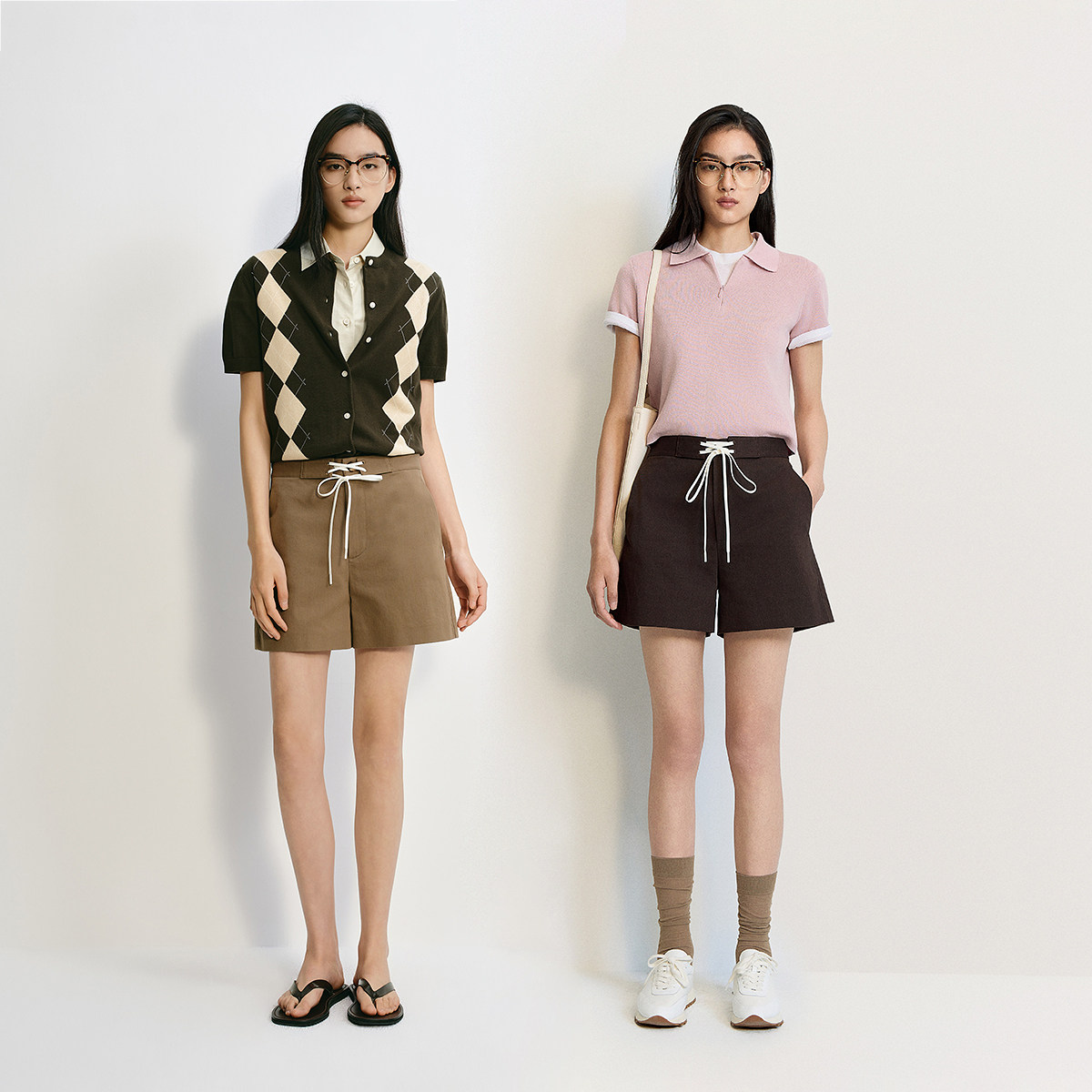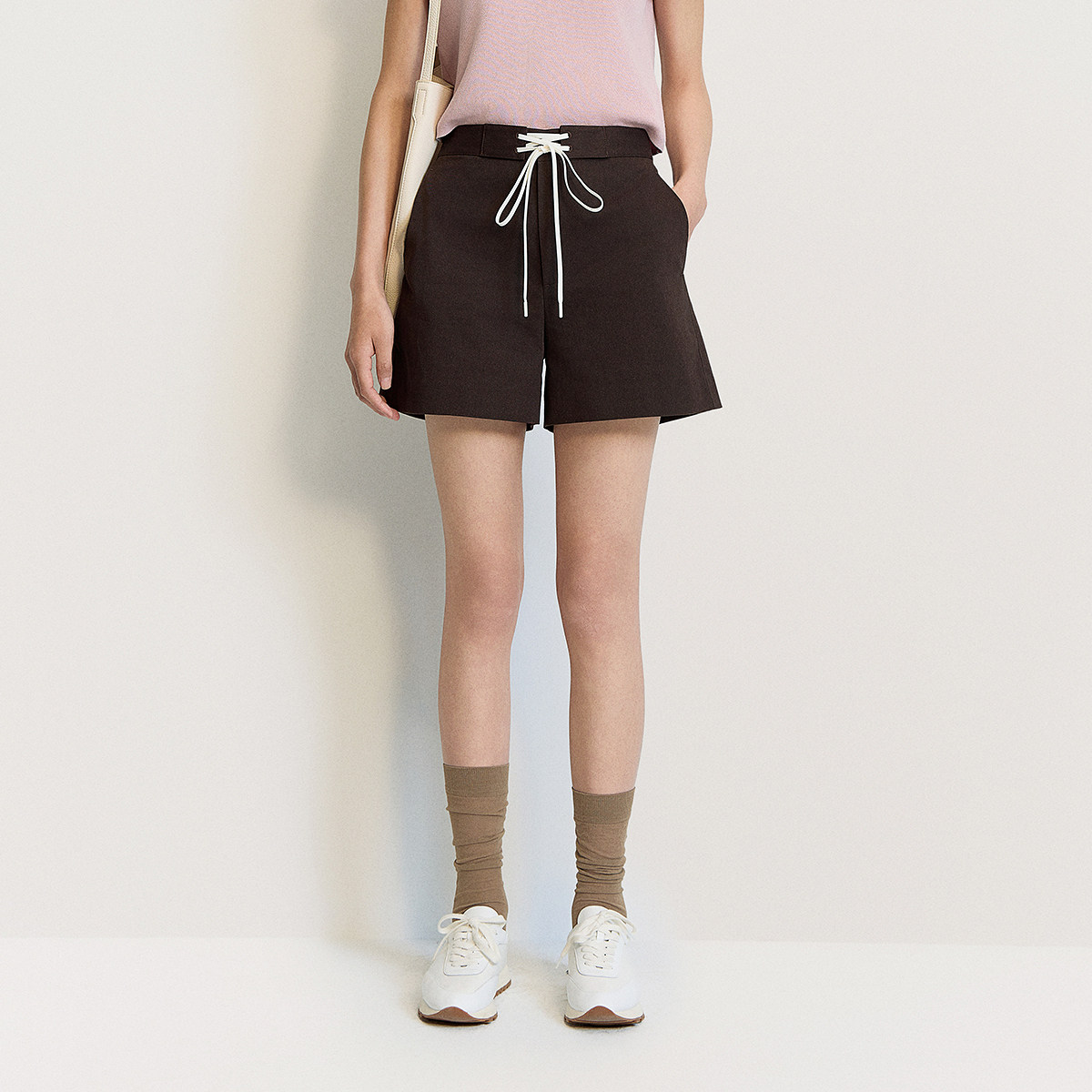 【特享折扣】欧时力100%棉直筒短裤女裤子系带休闲小个子2025秋新
