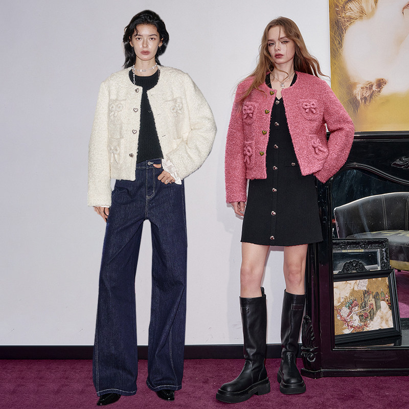 RUISHI芮时 “雪国印象”100绵羊毛颗粒绒大衣毛绒毛呢外套女冬