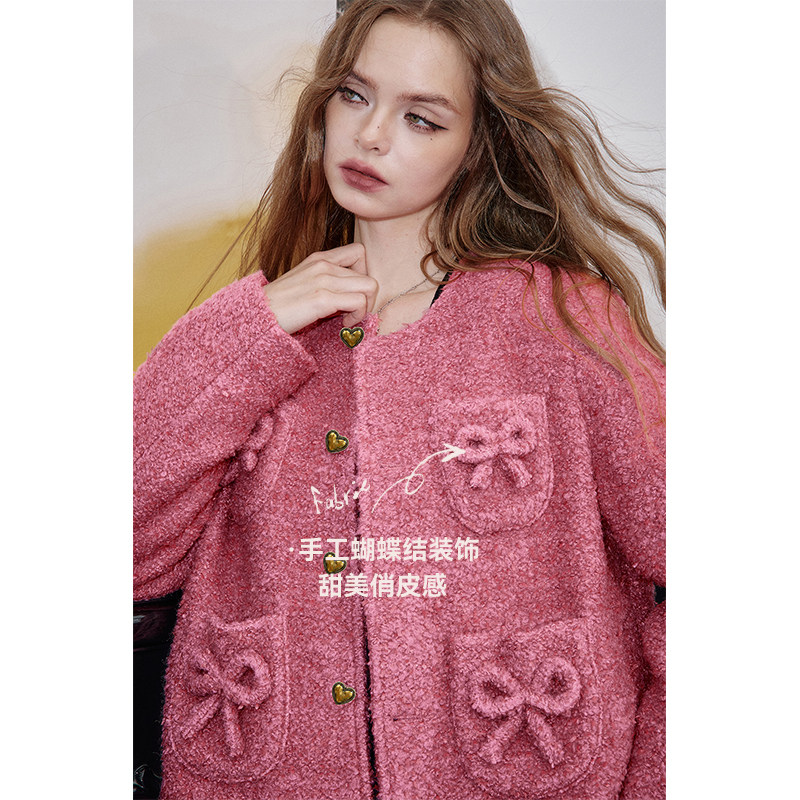 妖精的口袋立体蝴蝶结白色小香风外套女2025年冬季新款短款夹棉