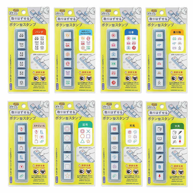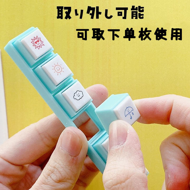 日本KODOMO NO KAO可摘取拆卸六联印浸透印章按钮式手账用可爱周边女子博文具6联天气印章1802