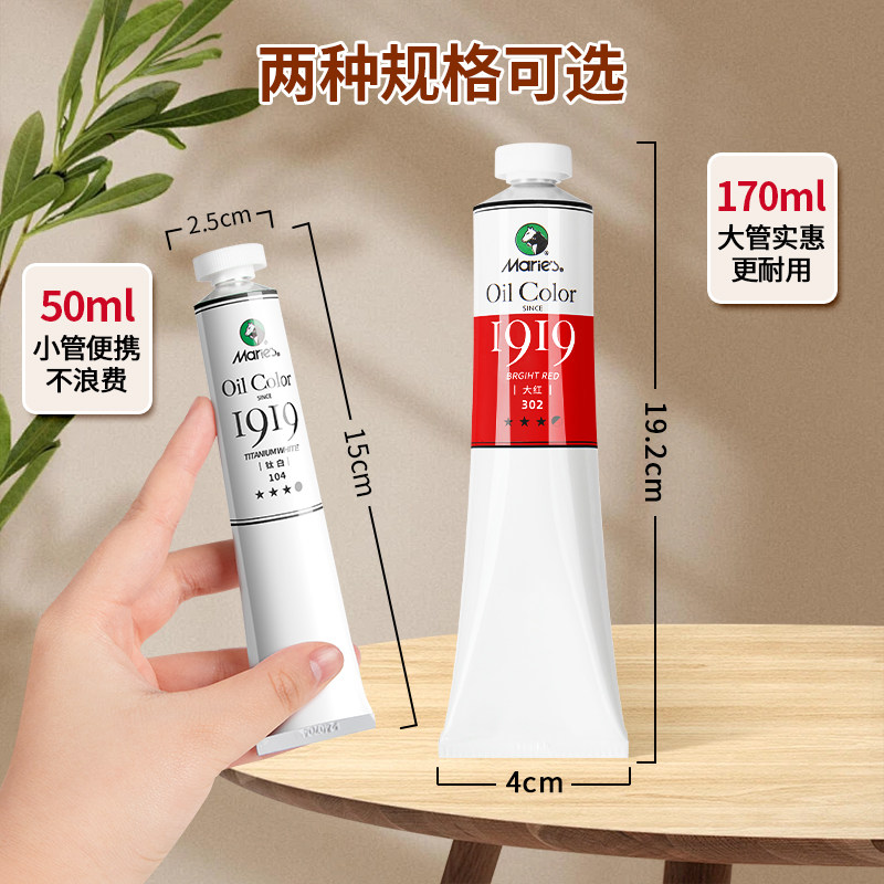 马利白色油画颜料50ML艺术家专业单支小支手绘油画布油画框美术生白染料工具套装玛丽牌丙烯金色钛白初学者