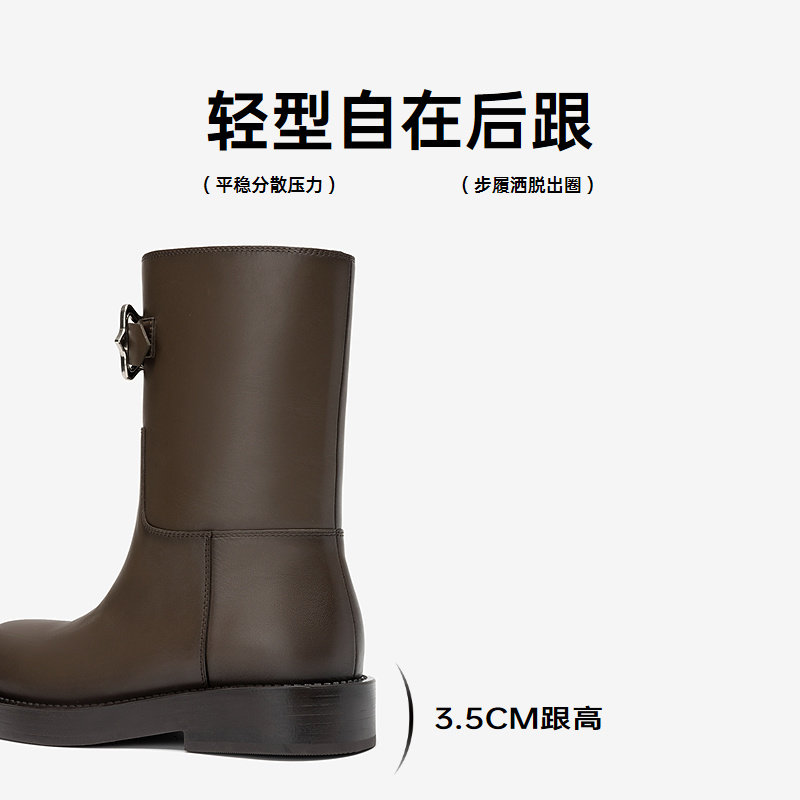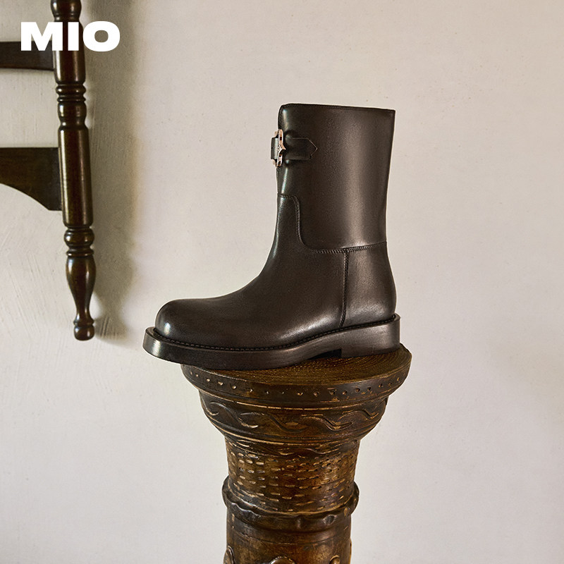 MIO米奥女靴冬季中筒靴复古短靴切尔西靴时装靴皮带扣皮靴骑士靴