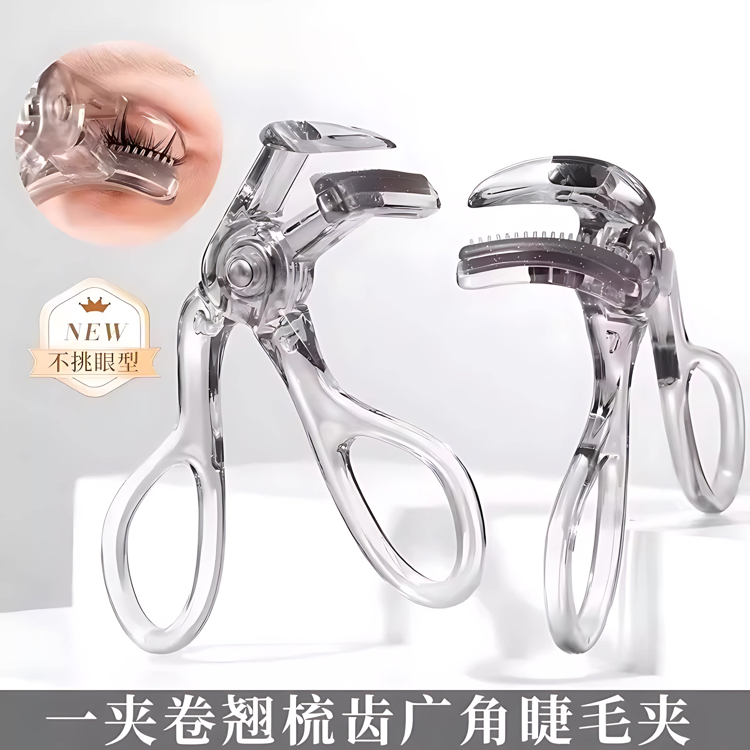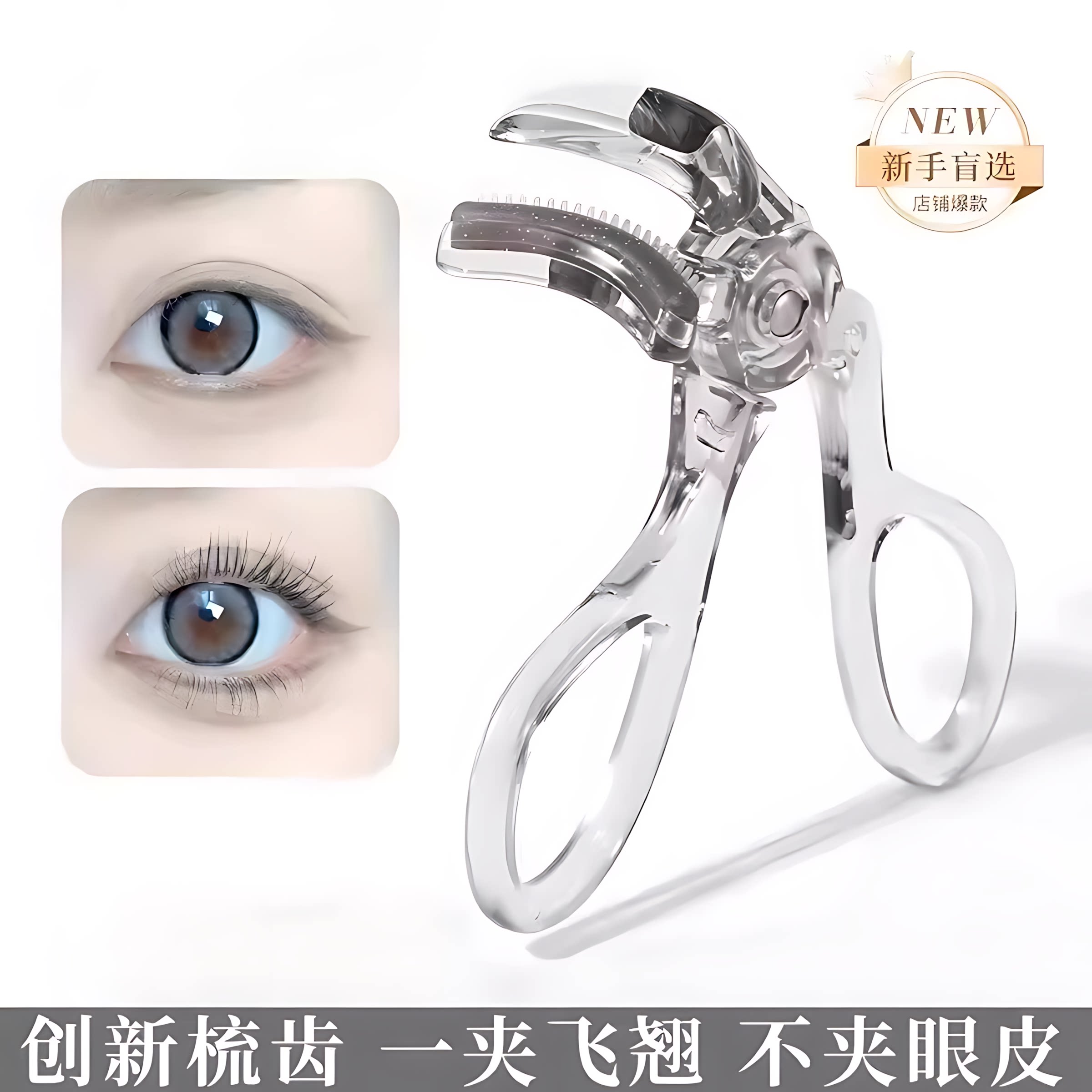 带齿梳子睫毛夹自然卷翘持久定型广角无边框太阳花夹睫毛器初学者