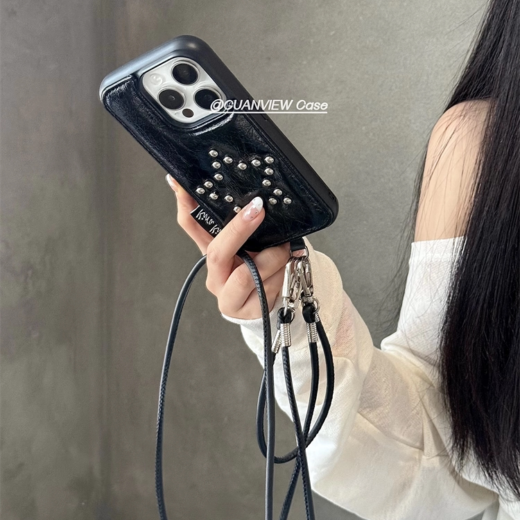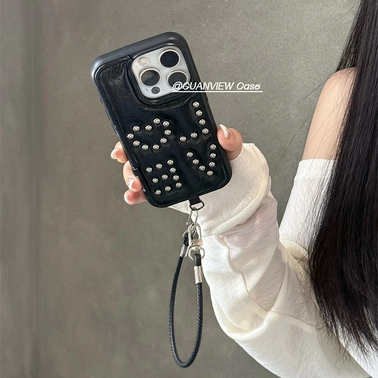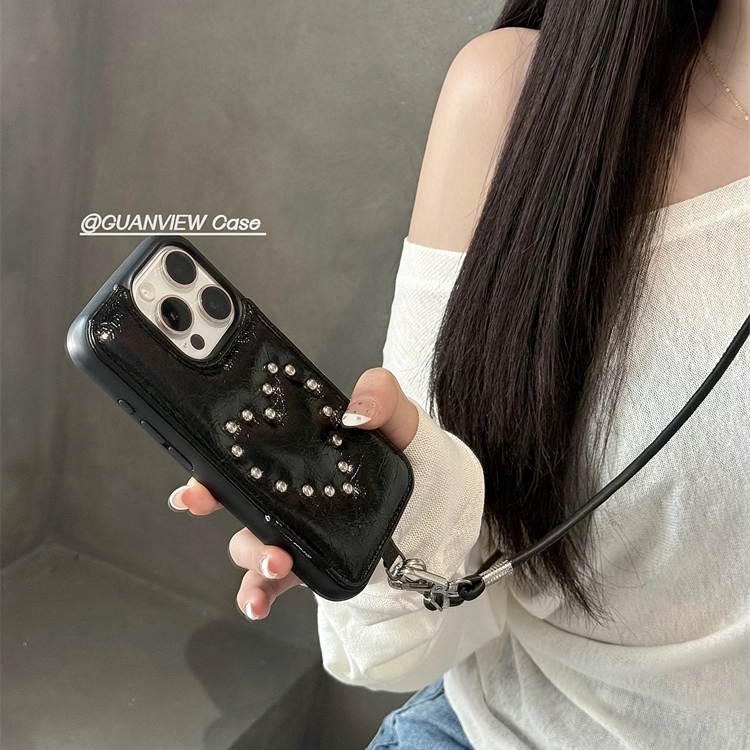 guanview 甜酷钢珠爱心蝴蝶结星星适用iphone17promax苹果16pro斜跨链条15手机壳14ins高级感皮纹13防摔17套