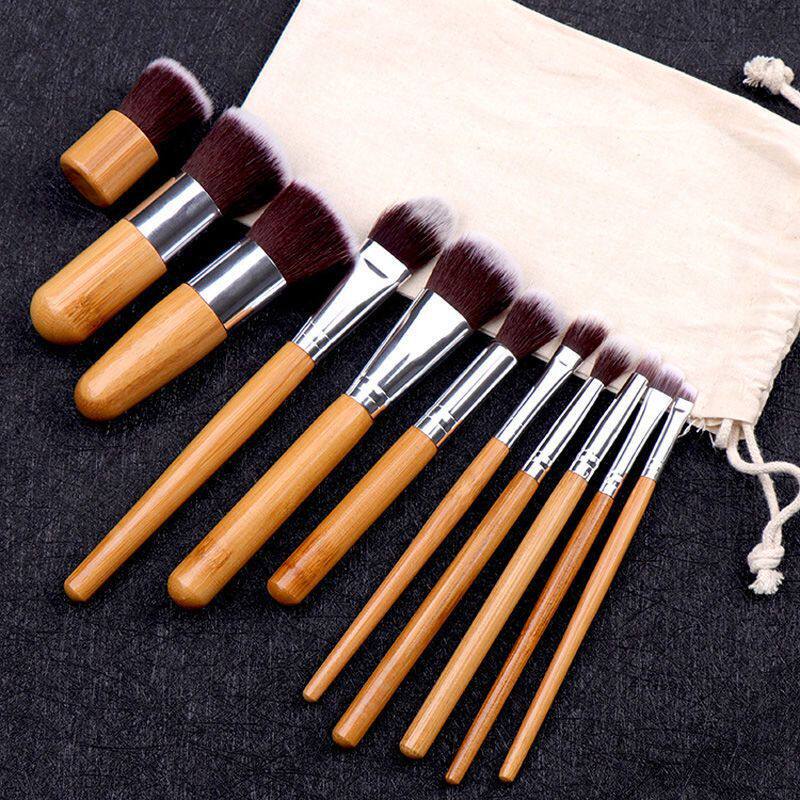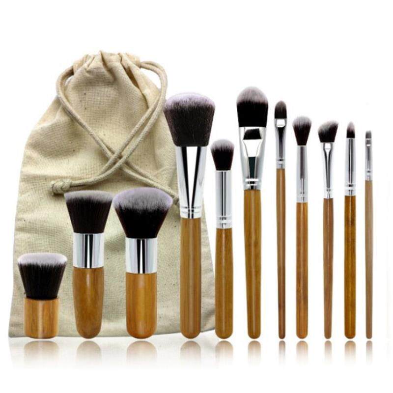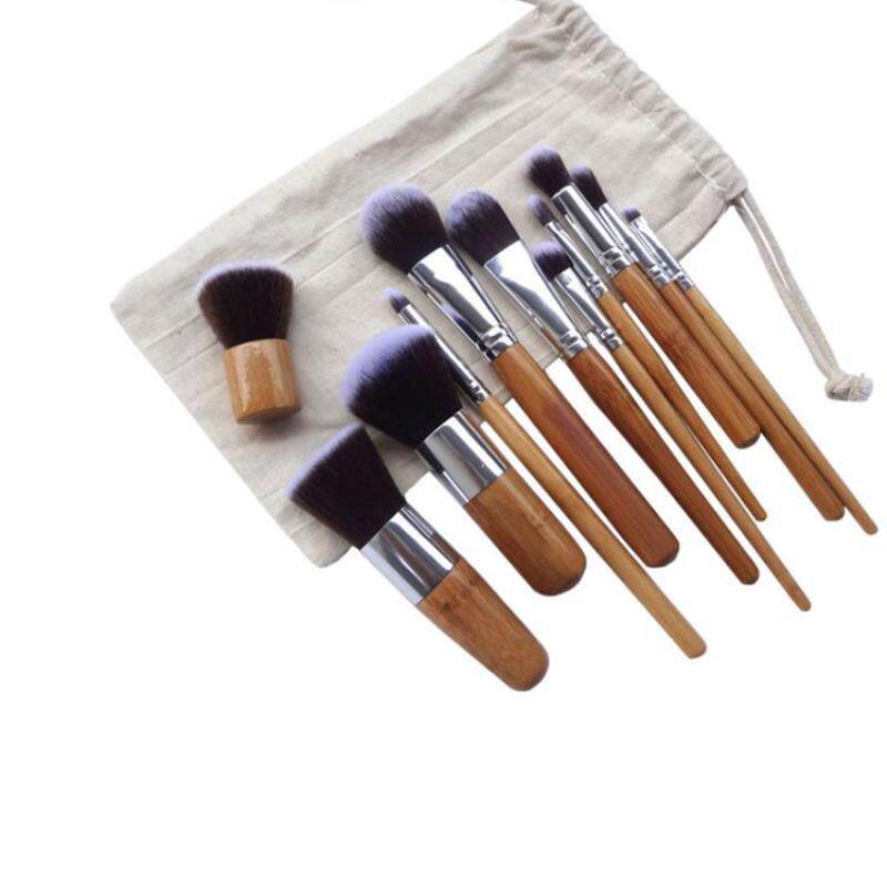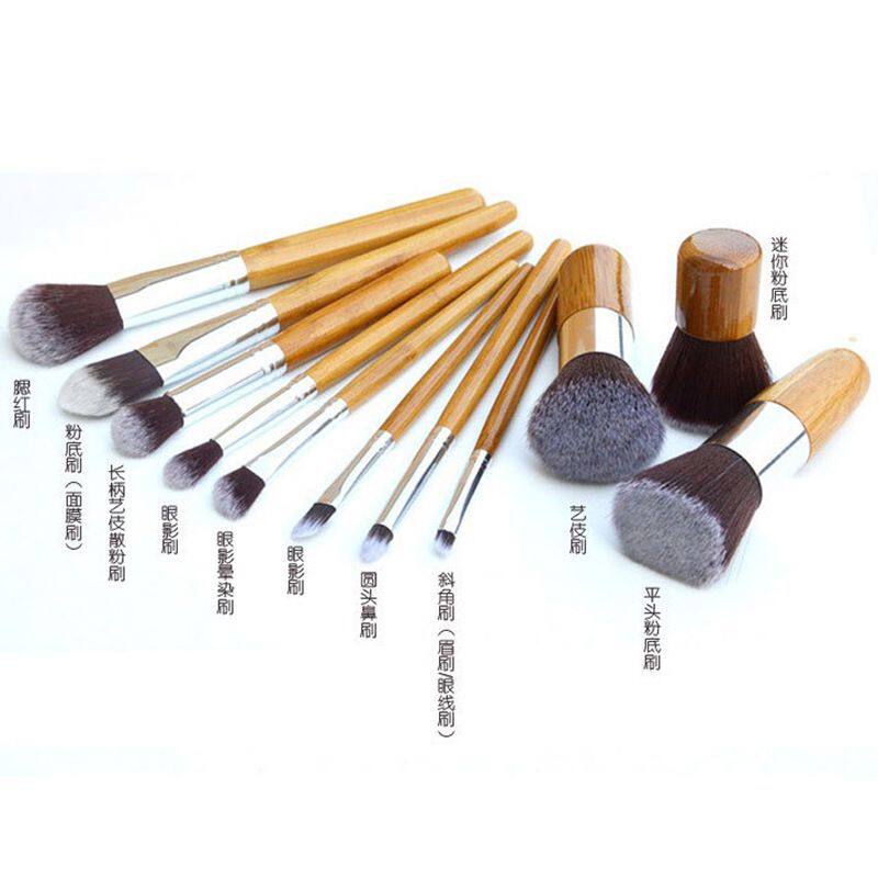 11支竹子柄化妆刷便携眼影刷面膜刷粉底刷多功能竹子柄化妆刷套装