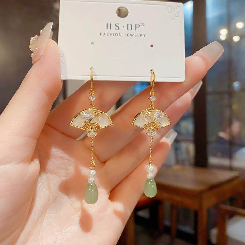 新中式气质时尚长款折扇流苏耳坠网红个性小众设计感独特耳钩耳饰