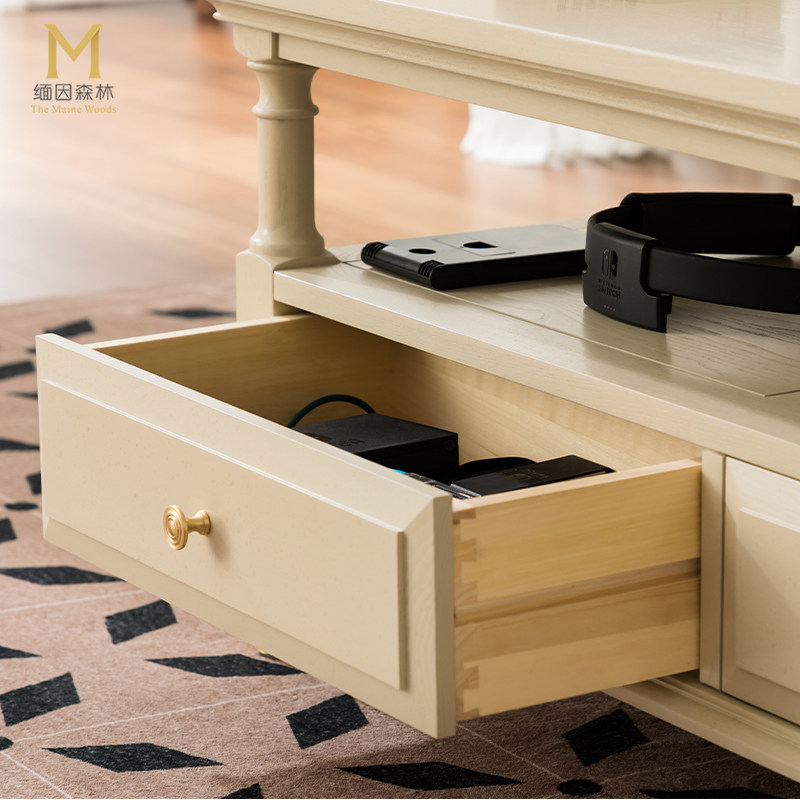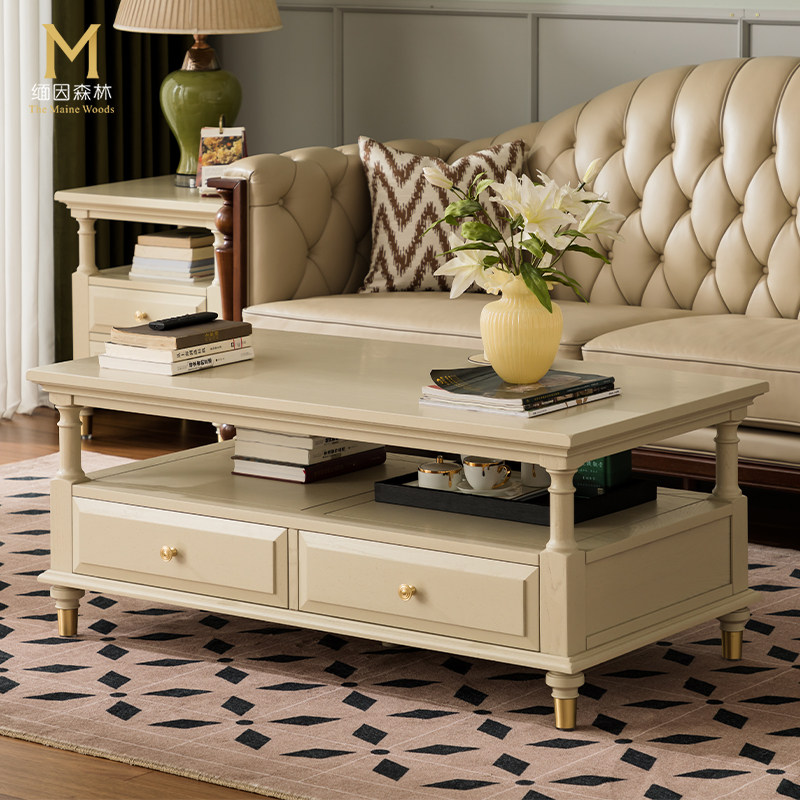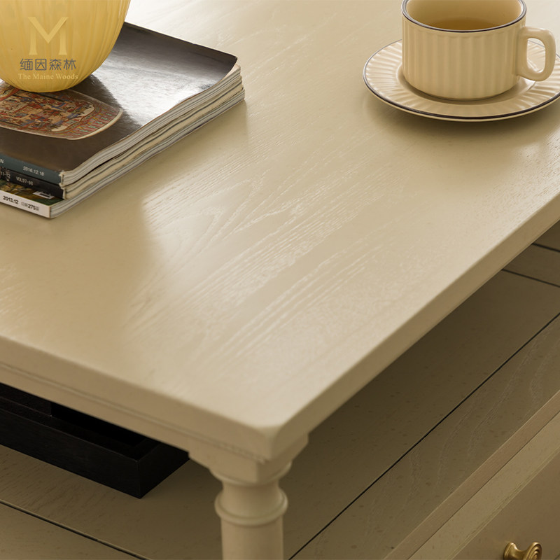 暖月白茶几 法式实木奶油白茶几客厅轻奢白蜡木全实木家具