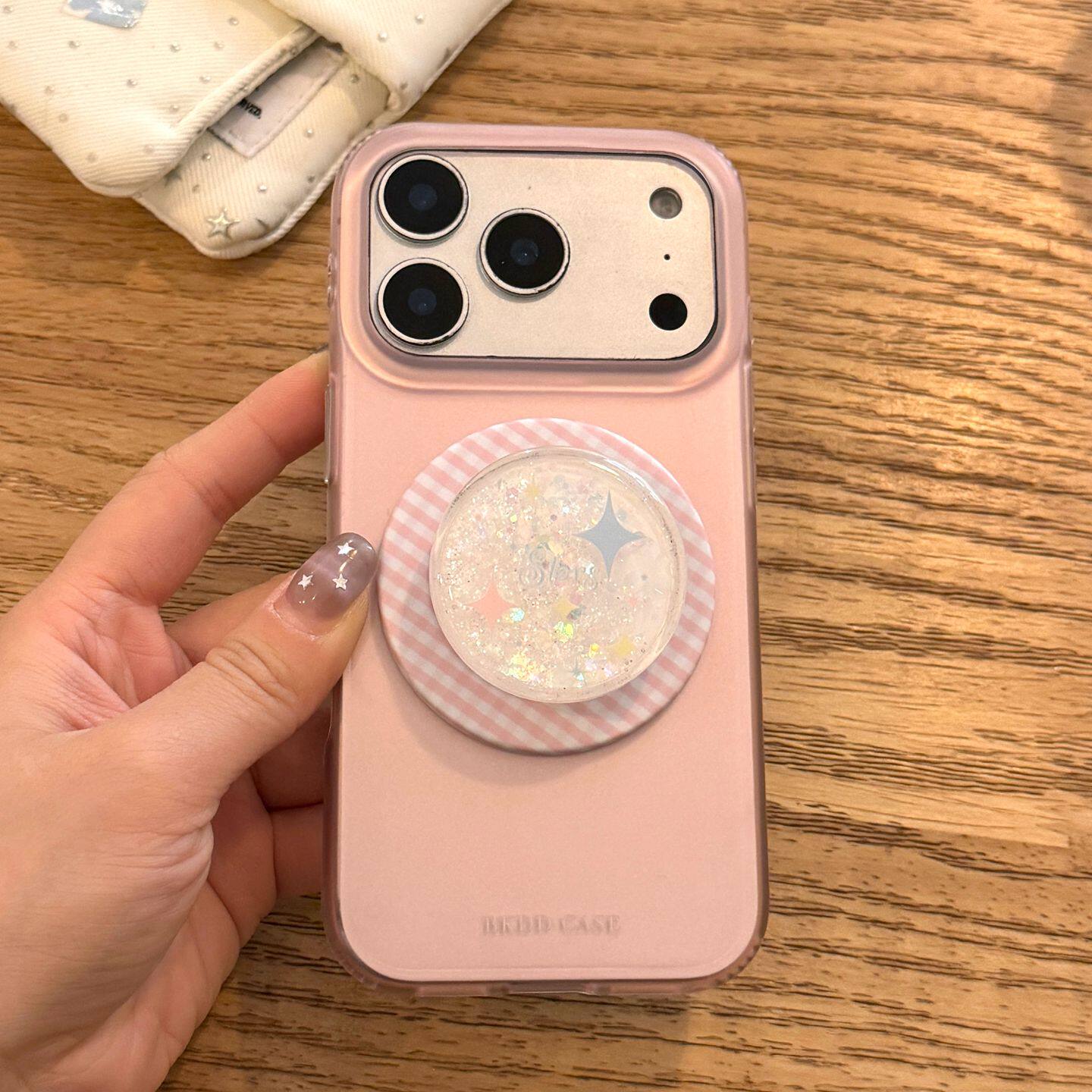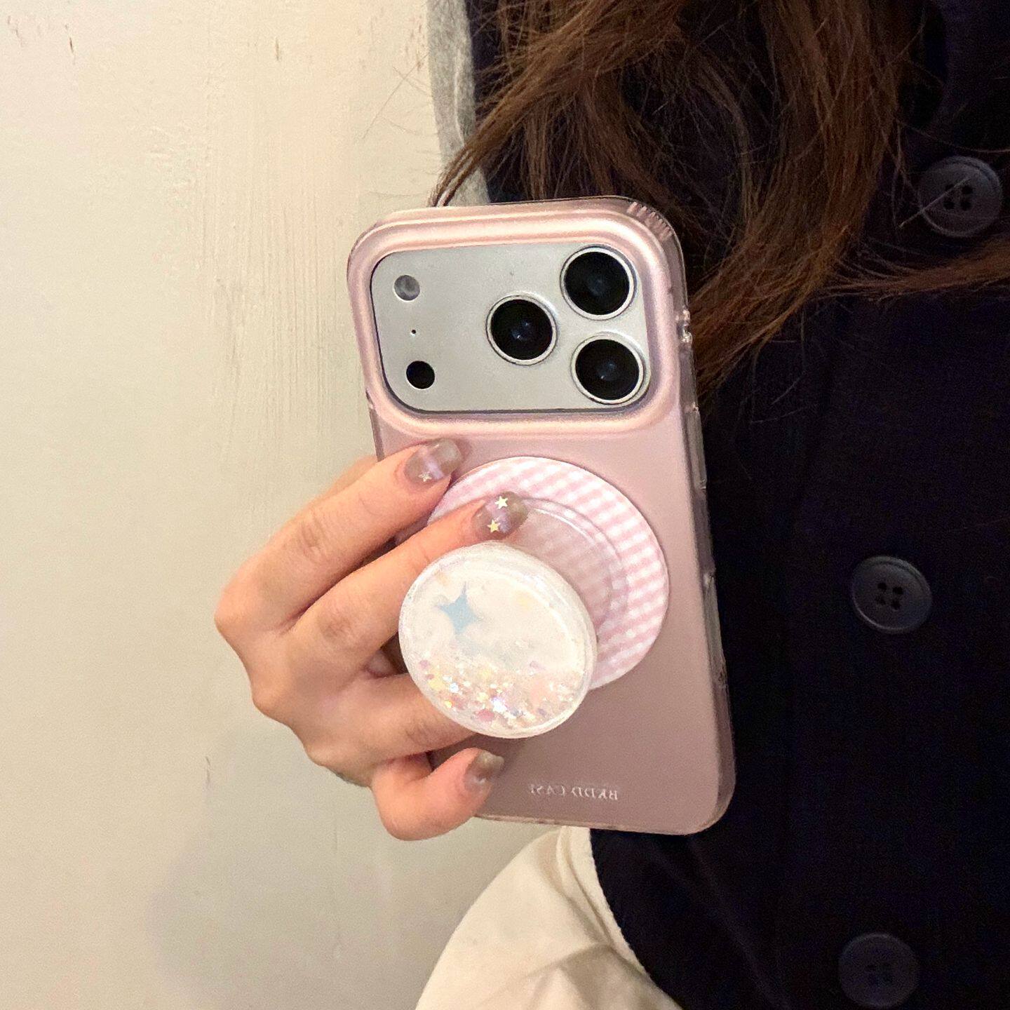 INS韩风少女纯色粉花流沙适用苹果17promax手机壳iphone16pro新款17女14pro磁吸支架15pro全包硬底防摔手机套