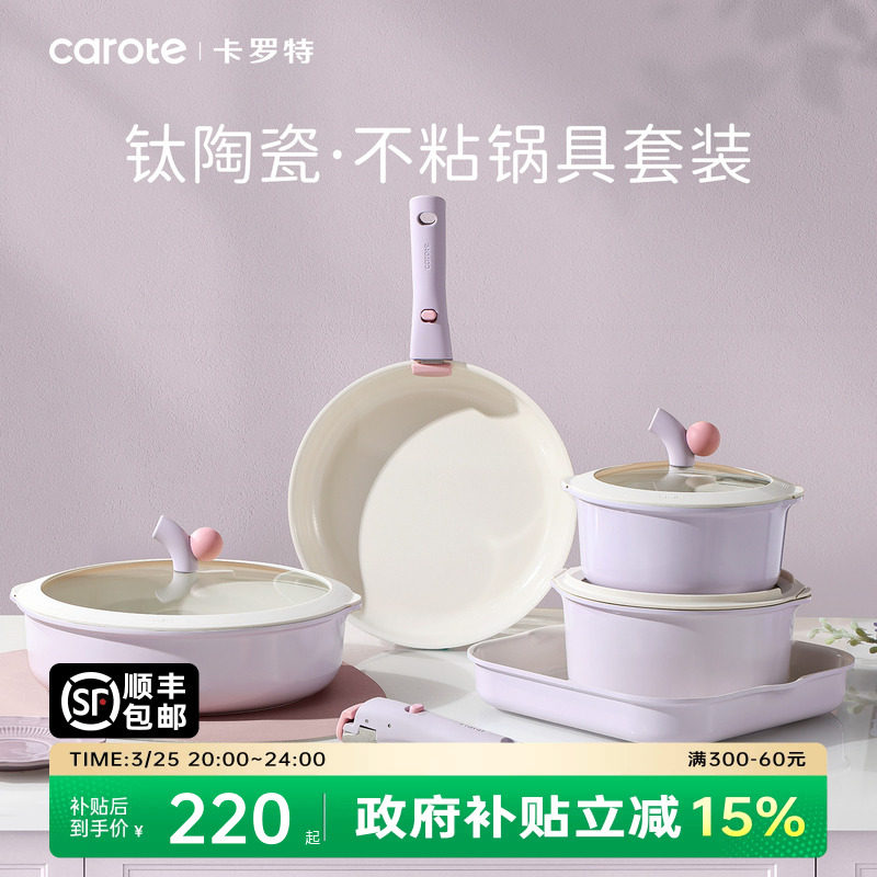 卡罗特不粘锅全套家用可拆钛陶瓷锅电磁炉燃气灶通用厨房锅具套装
