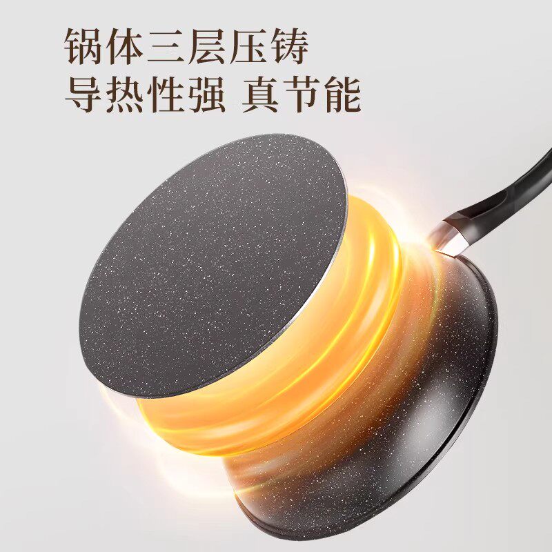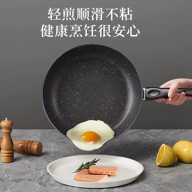 麦饭石平底锅牛排煎锅不粘锅家用煎饼锅小煎蛋锅电磁炉烙饼深煎锅