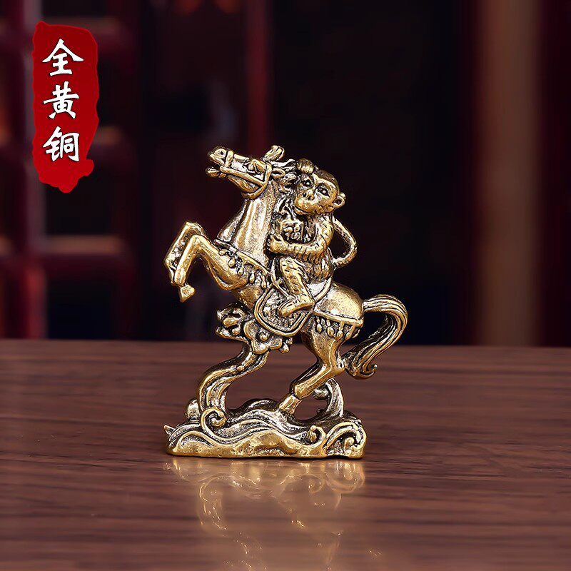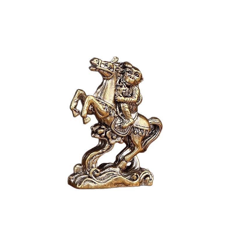 实心黄铜马上猴复古老物件居家装饰茶宠桌面工艺品小摆件
