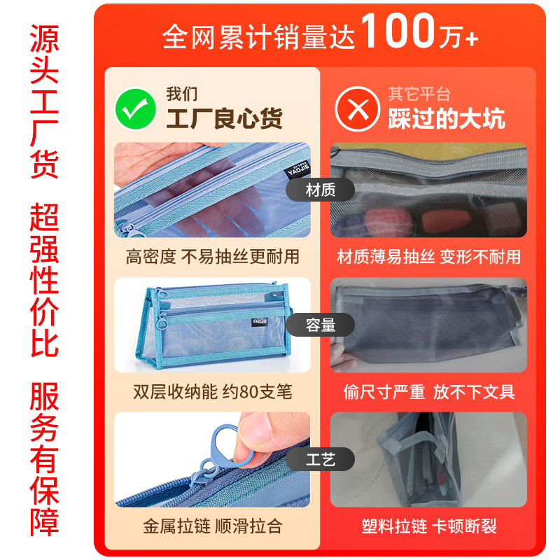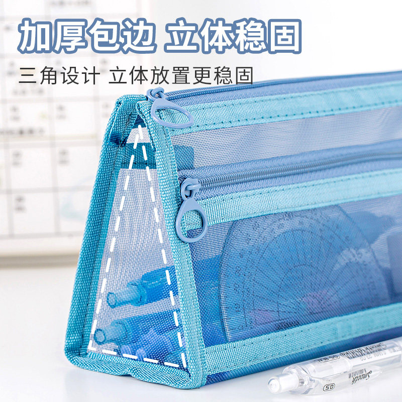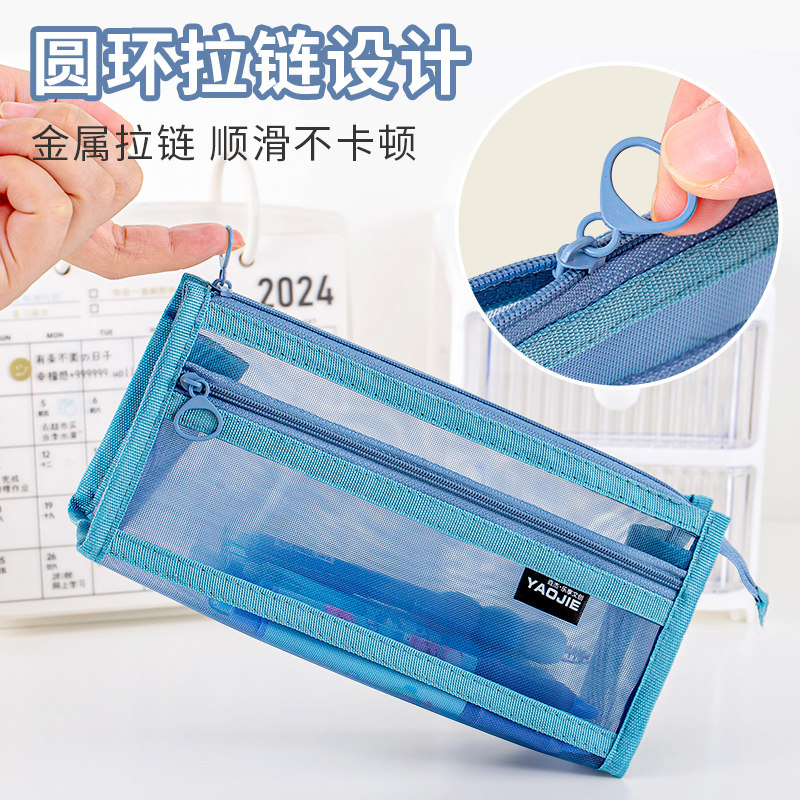 笔袋透明网纱小学生考试专用文具袋儿童铅笔盒男生一年级双层大容量文具盒女孩款2026新款简约收纳袋高颜值