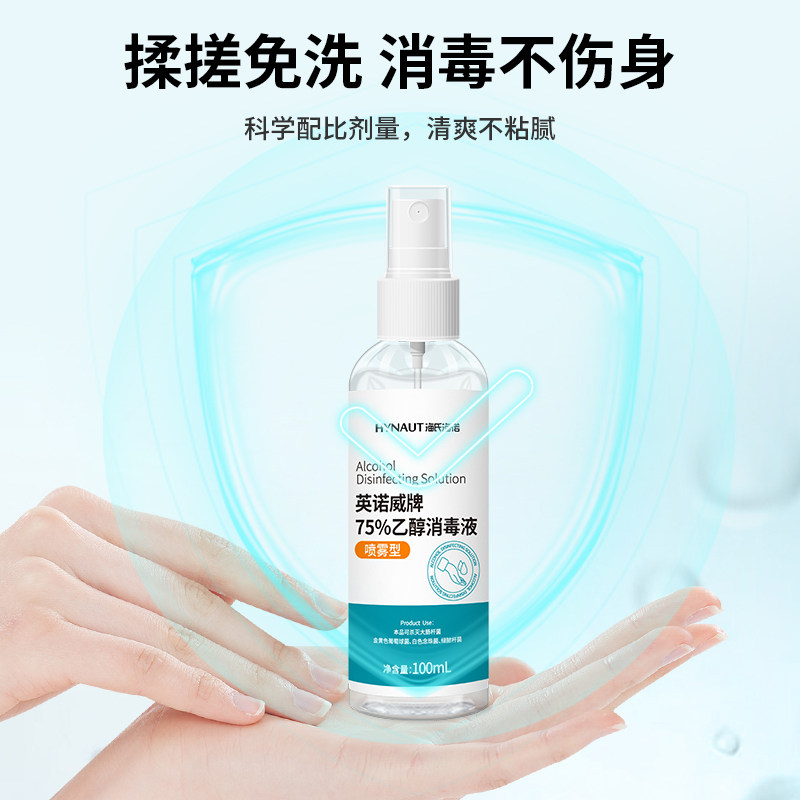 海氏海诺75度酒精喷雾100ml家用室内杀菌免洗便携小瓶乙醇消毒液