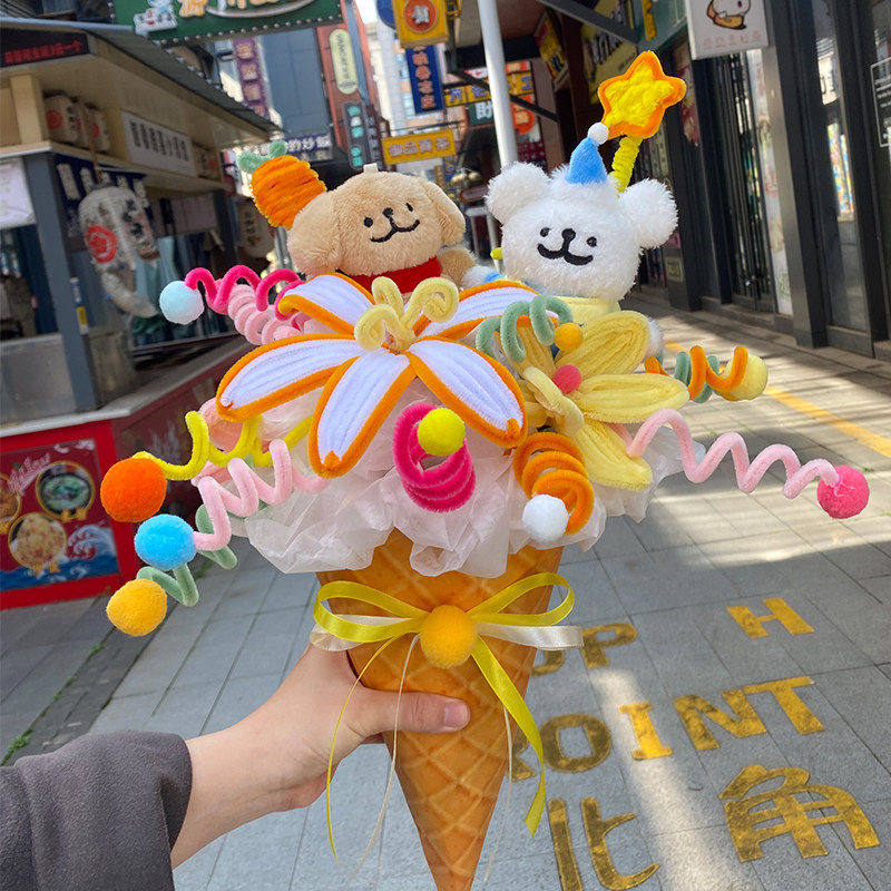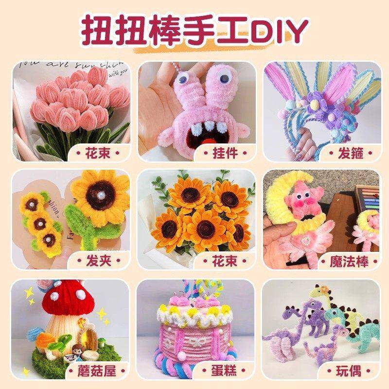 扭扭棒网红手工花束diy材料包幼儿园毛根条毛绒自制手捧花妞妞棒