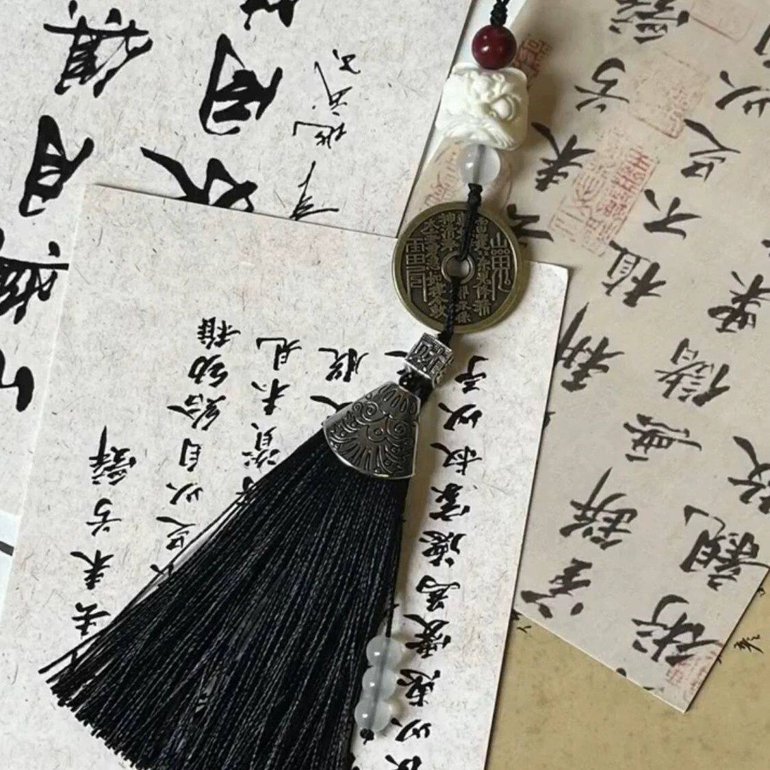 新中式道系青年闺蜜款包挂醒狮山鬼花钱流苏吊坠挂件斜挎包包