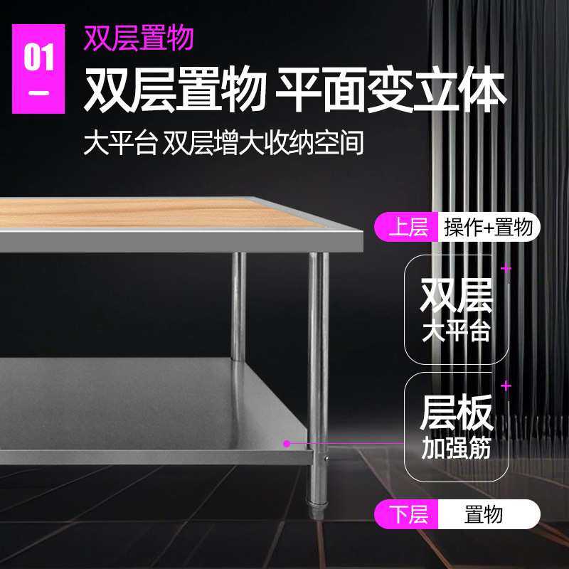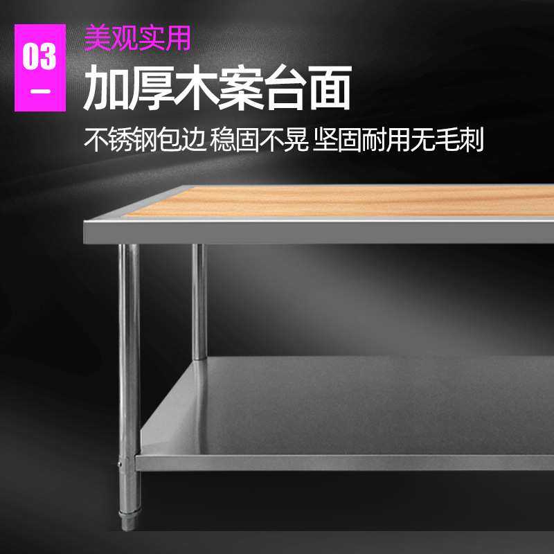 商用不锈钢厨房木案台家用擀面台木面案板工作台切菜板双层置物架