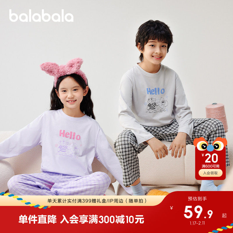巴拉巴拉儿童睡衣套装女童家居服宝宝2025春秋新款男童纯棉空调服