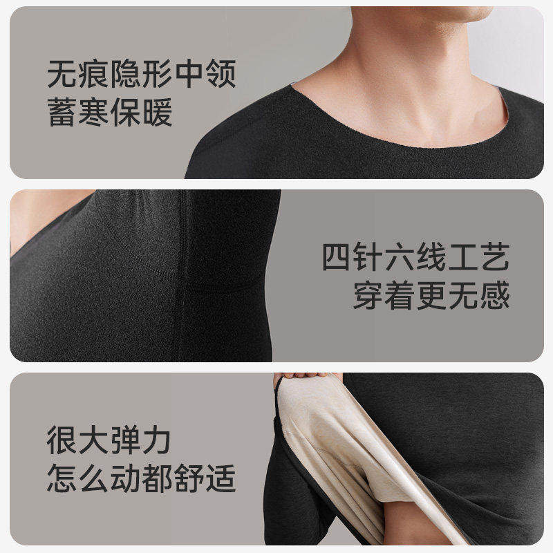 中高领保暖内衣男士加绒加厚套装大码德暖绒秋衣秋裤打底棉毛衫冬