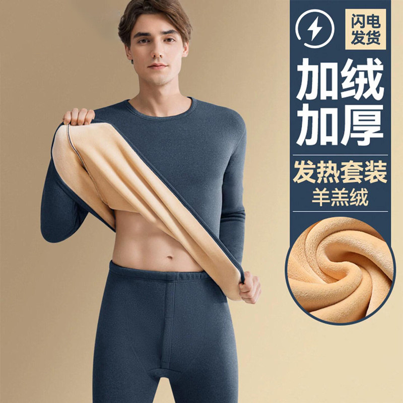 雅鹿德绒男士保暖内衣男款加绒加厚发热羊绒蚕丝打底秋衣秋裤套装