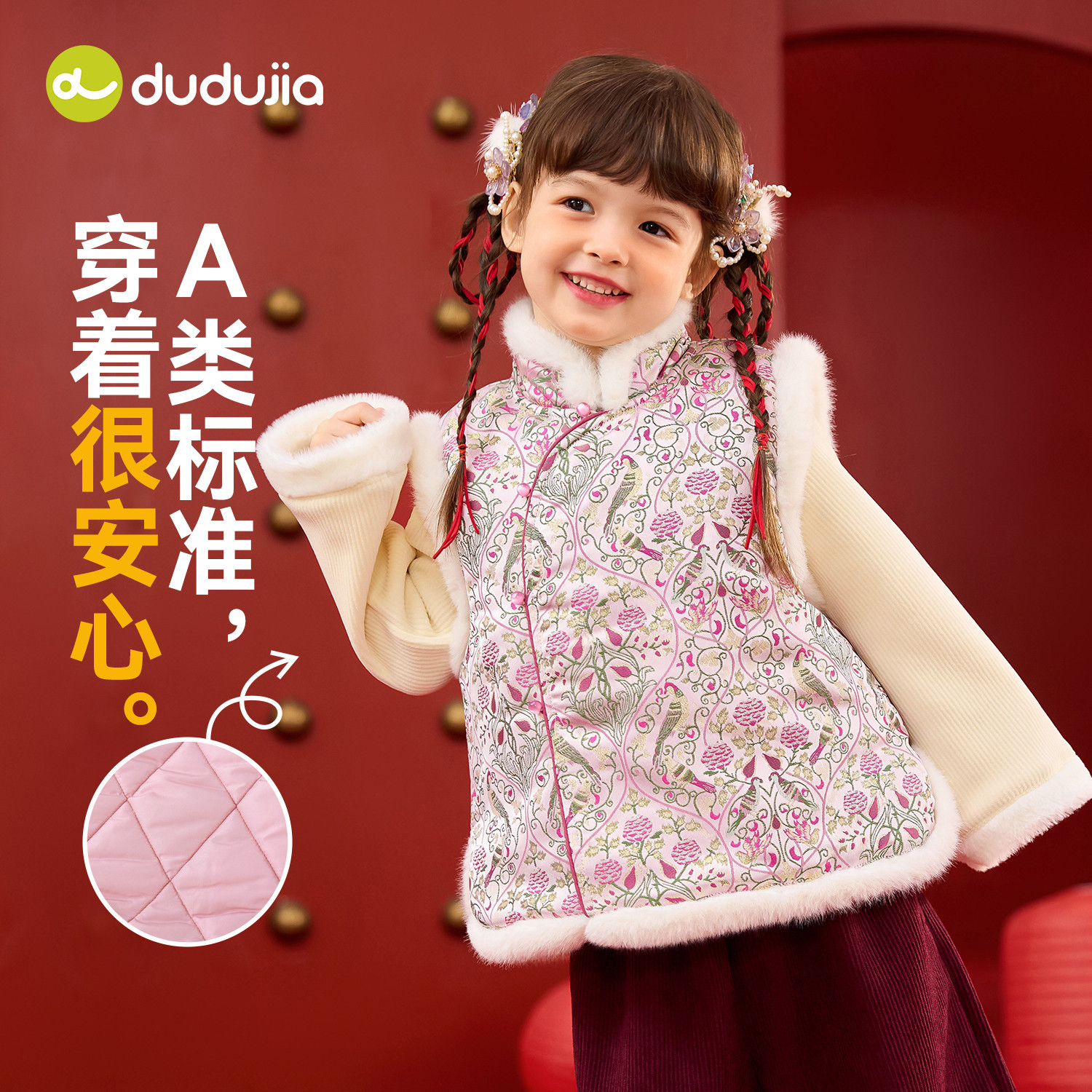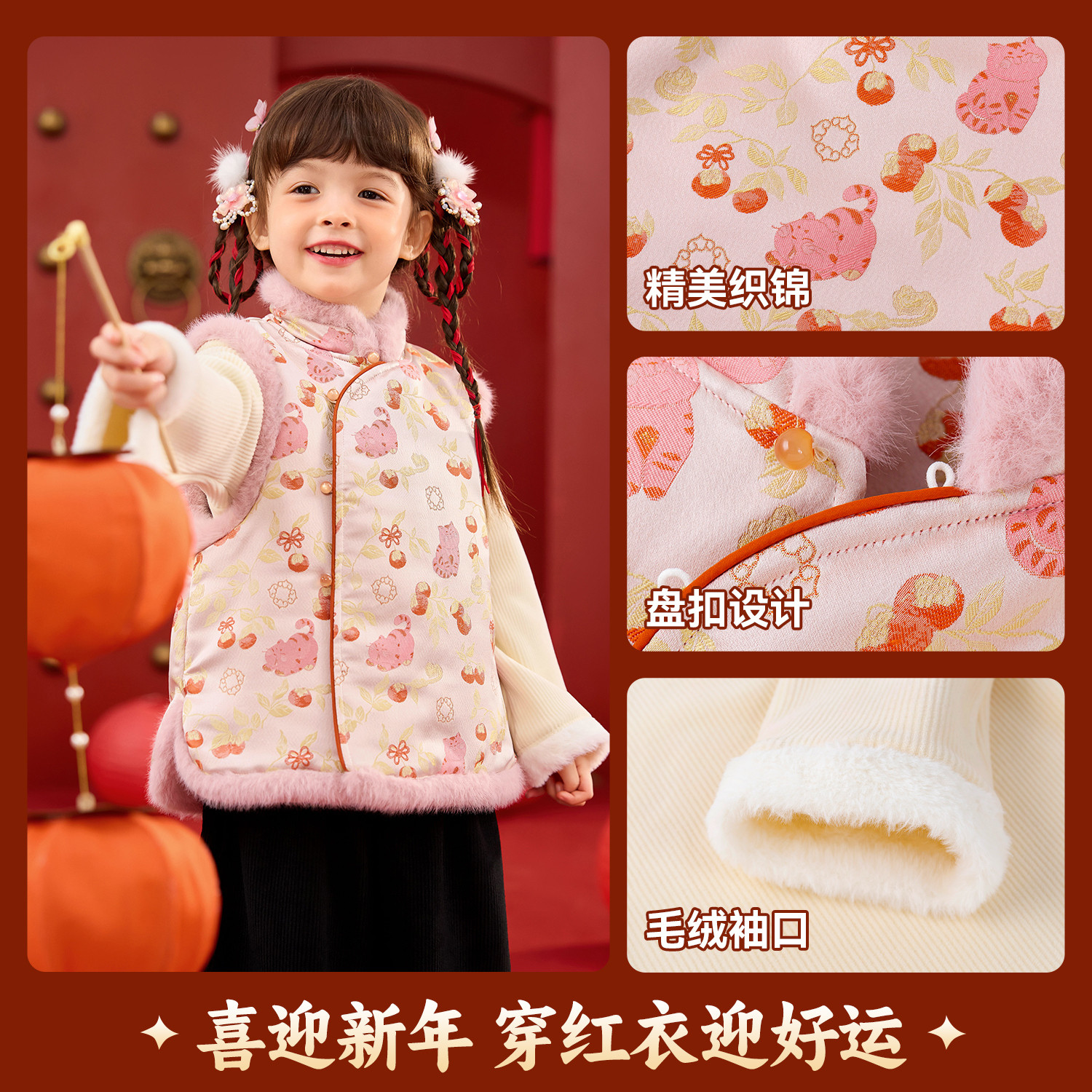 嘟嘟家女童唐装马甲冬季宝宝拜年服喜庆儿童新中式马褂年装两件套