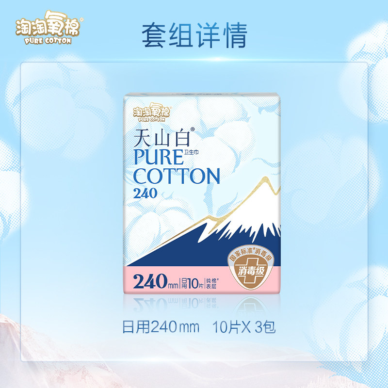 【国标消毒级】淘淘氧棉天山白消毒级纯棉卫生巾日用240mm姨妈巾