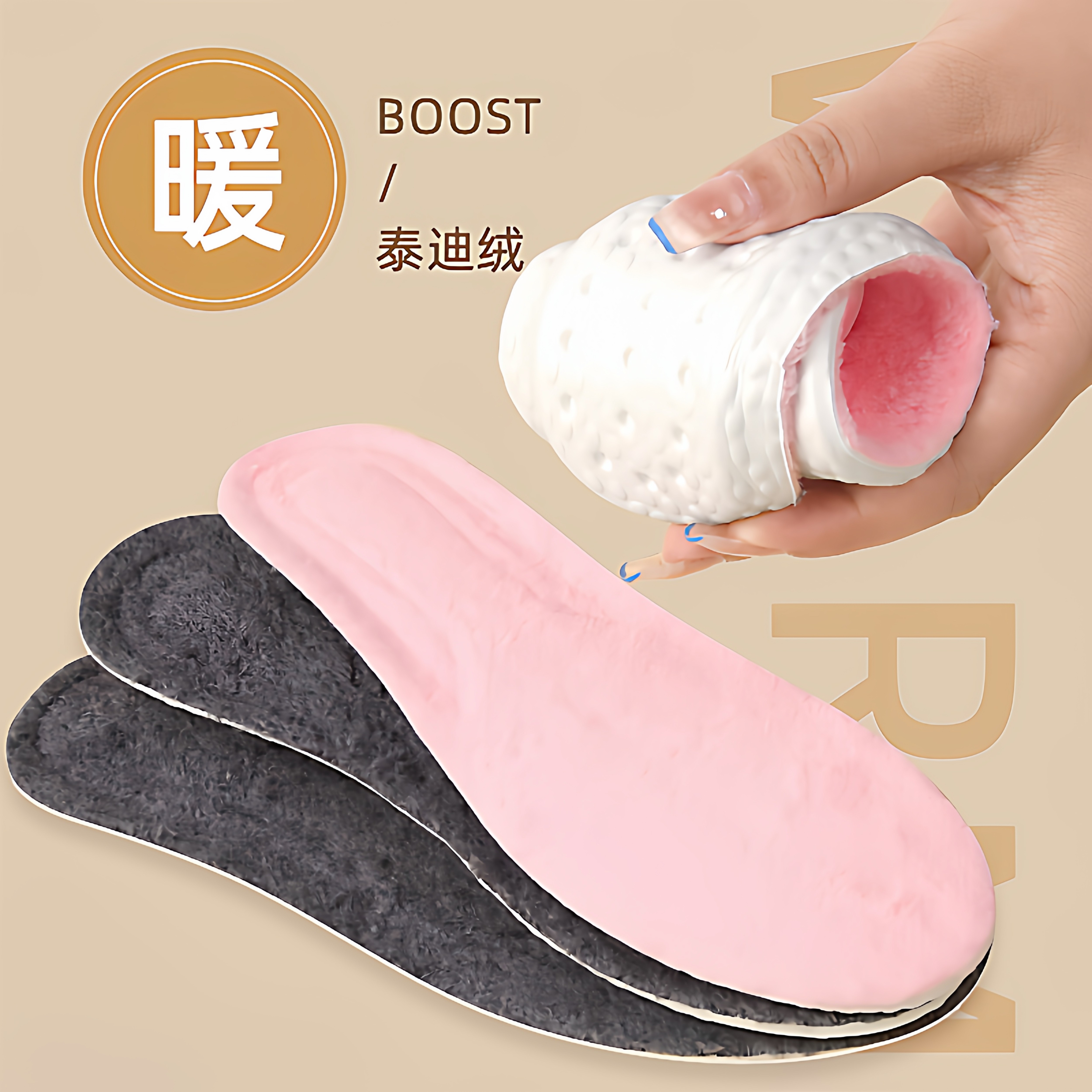 毛绒鞋垫冬季保暖不闷加绒加厚运动减震超软踩屎感棉鞋垫吸汗防臭