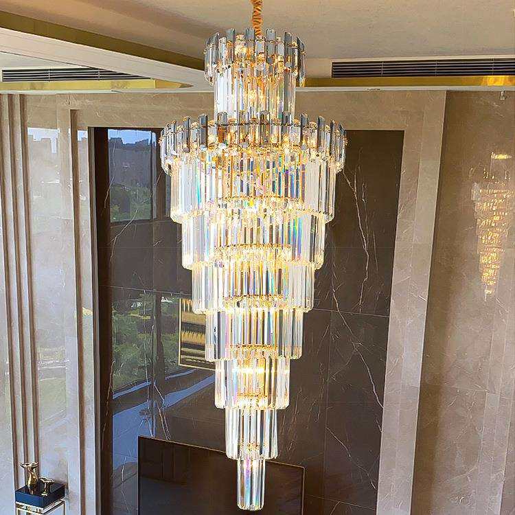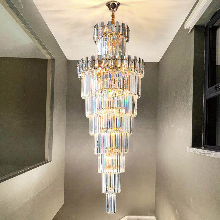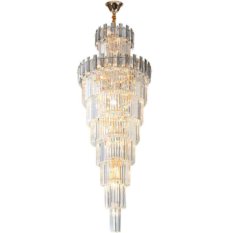 楼梯吊灯长中山灯饰挑空跃层现代轻奢别墅酒店楼中楼K9水晶灯家居