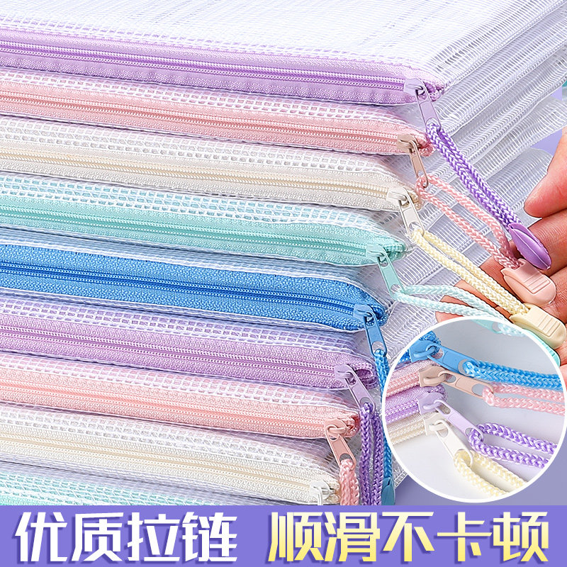 晨光文具学科科目分类袋小学生文件袋拉链式试卷收纳袋透明网纱双层大容量书袋作业资料a4考试专用袋票据产检