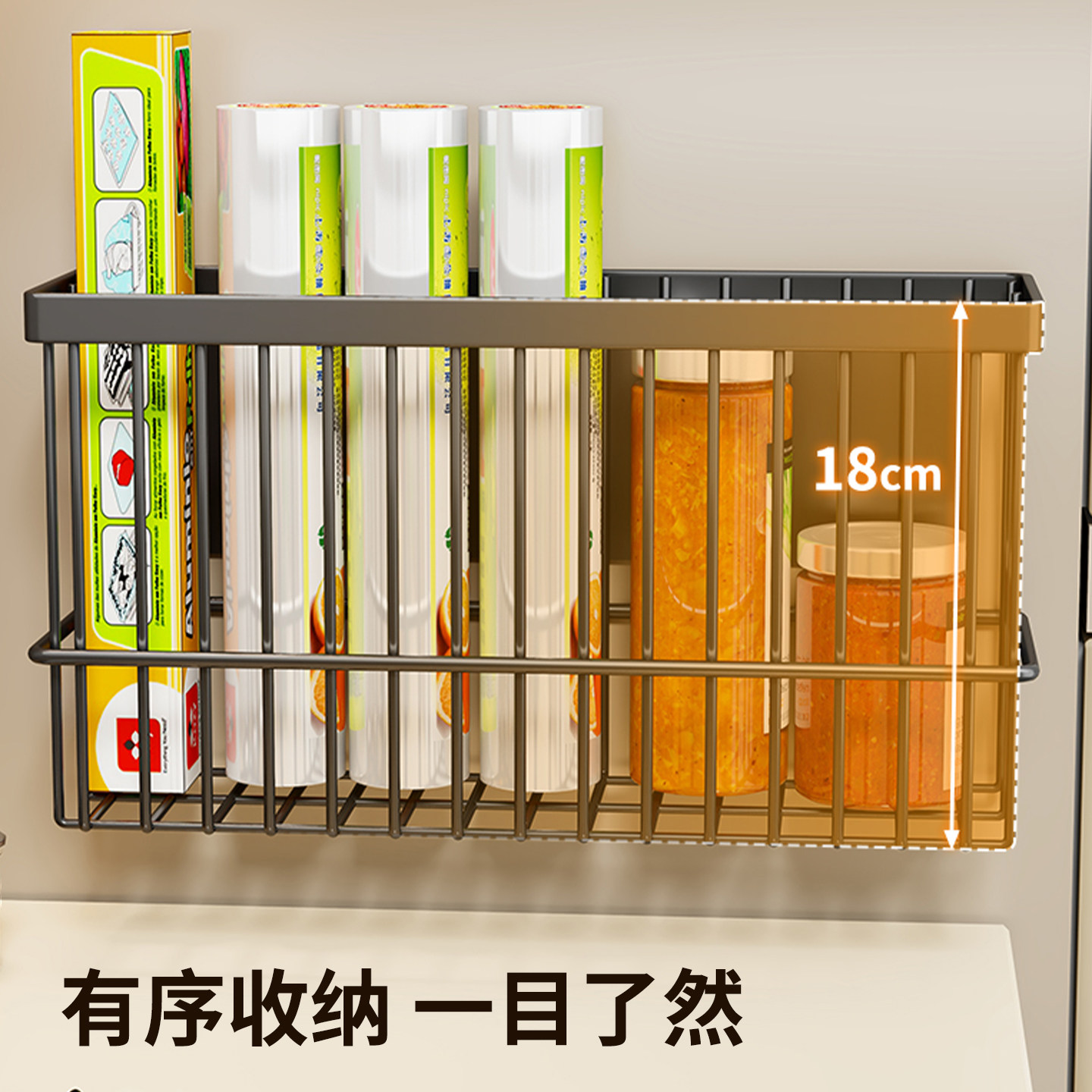 厨房吊柜门下置物架悬挂吊篮挂架分层储物架挂纸巾保鲜膜收纳架子