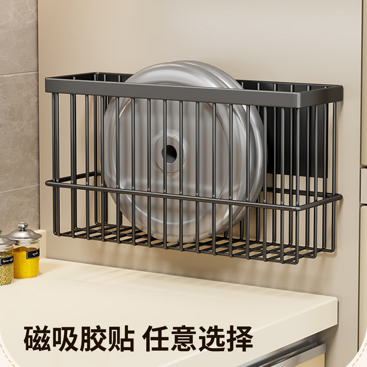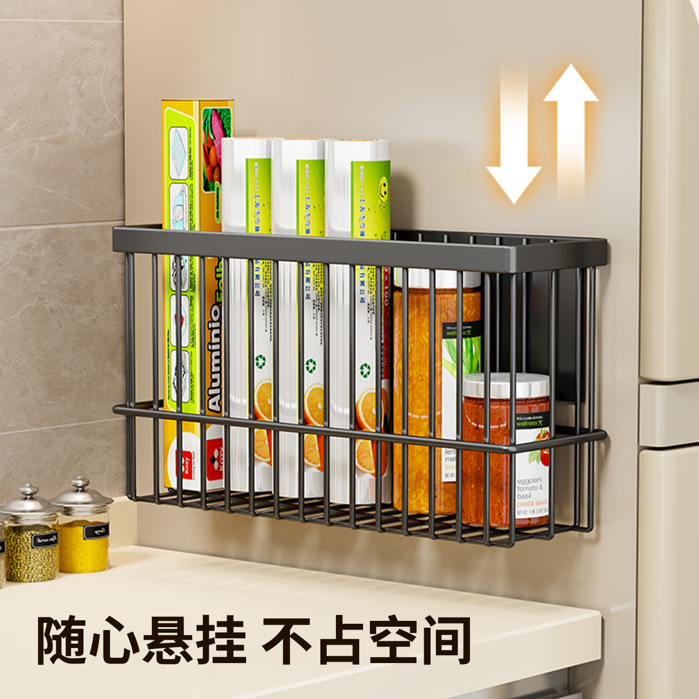 厨房置物架冰箱侧磁吸调料品放置架壁挂式保鲜膜储物筐悬挂移动