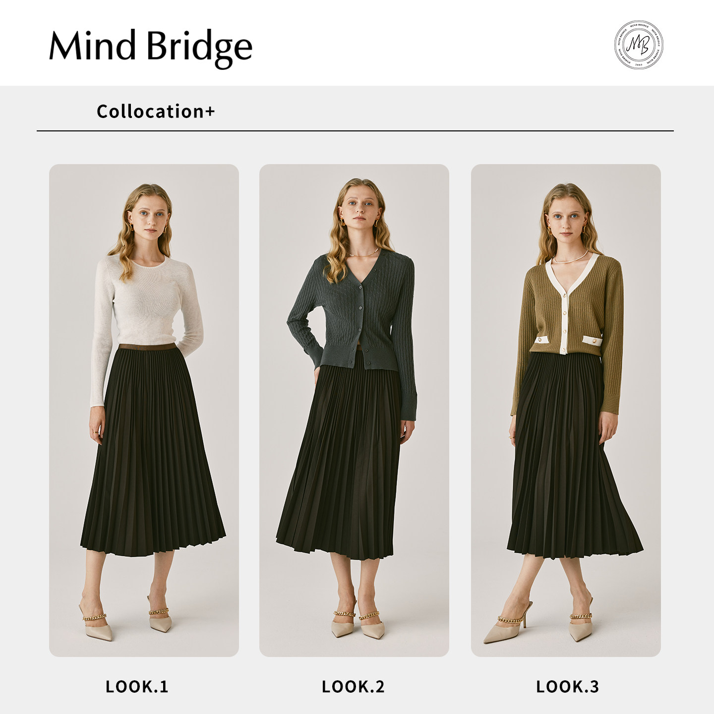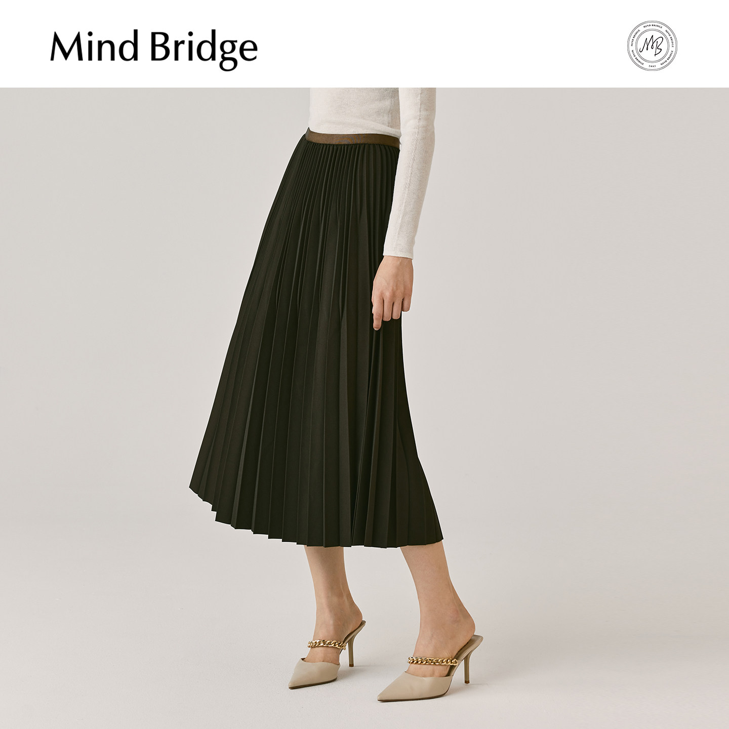 Mind Bridge2026年春季百褶裙女士垂感显瘦中长款裙子A字半身裙