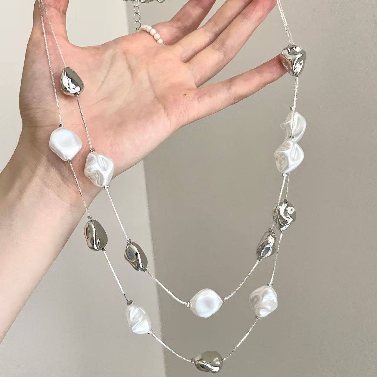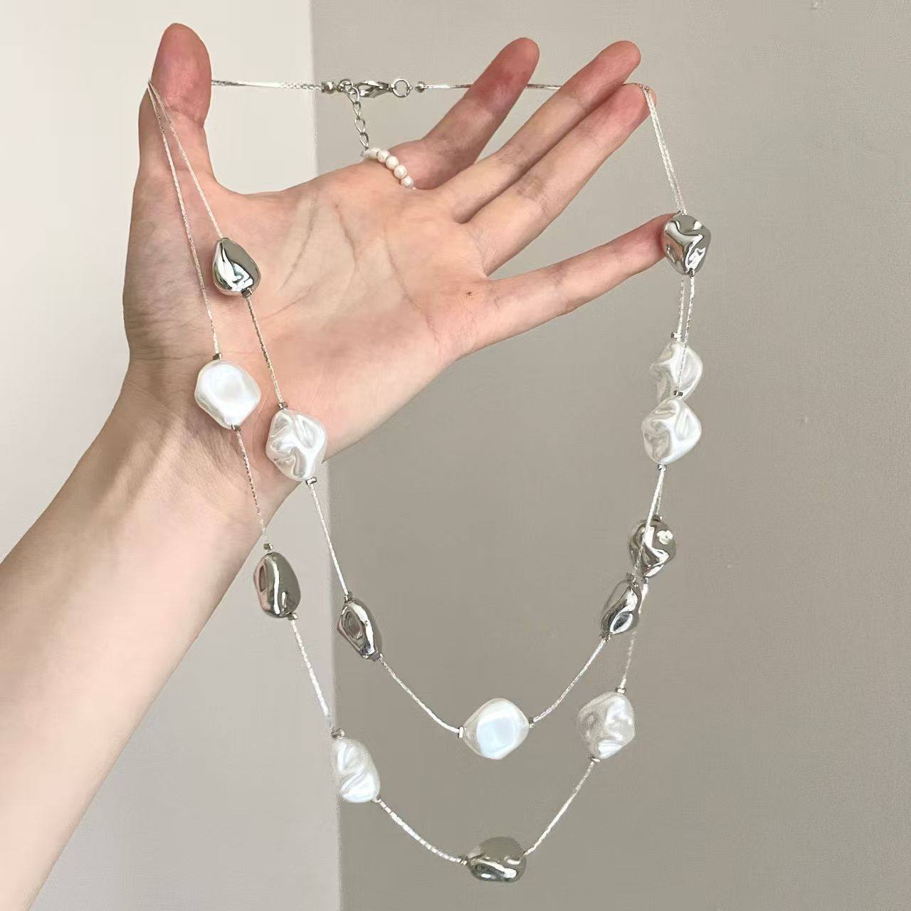 Vintage古着 不规则长款串珠项链女2025新款轻奢高级精致锁骨链