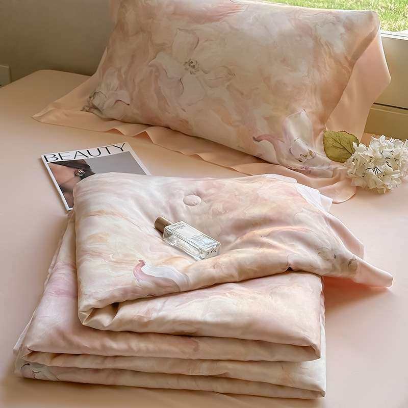 法式浪漫田园花卉100S夏季凉感丝滑天丝印花夏被四件套少女心床品