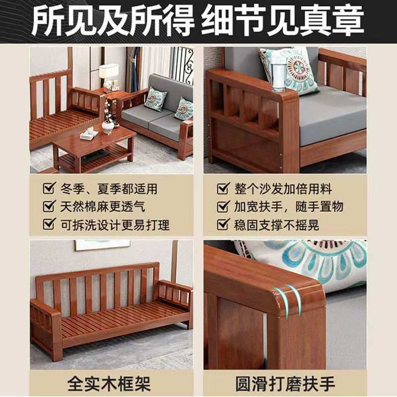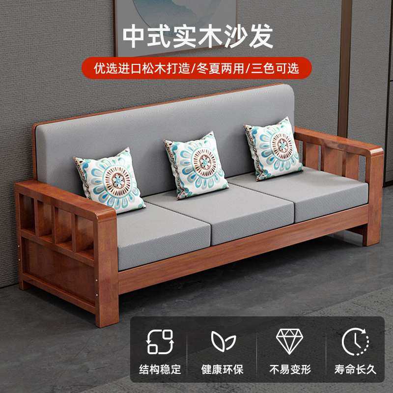 实木沙发组合新中式家用客厅小户型直排三人位简约经济型原木沙发