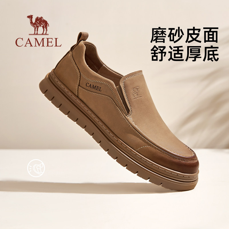 骆驼2024秋冬新款复古休闲英伦舒适擦色厚底耐磨防滑乐福皮鞋男士