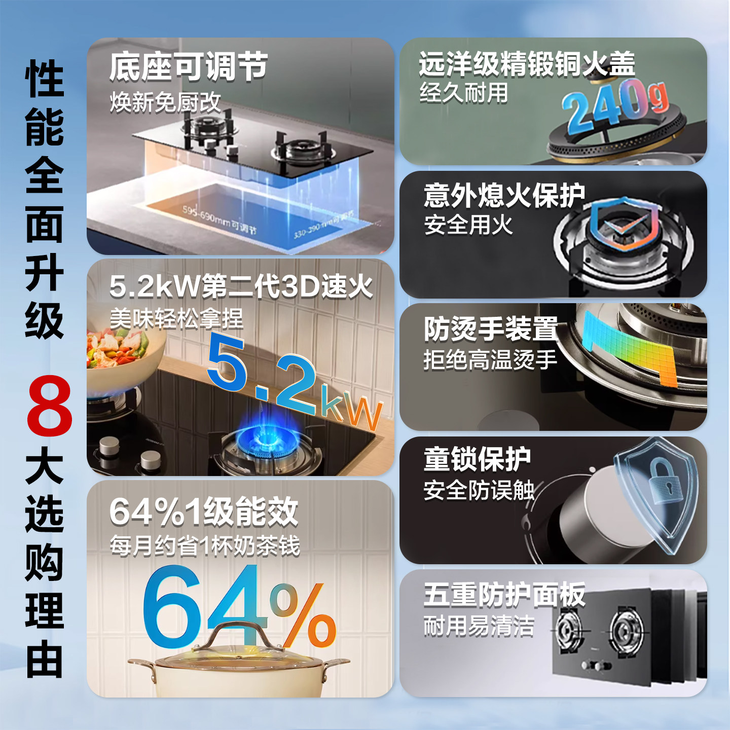 可调节底座熄火保护防烫手装置5.2KW大火力