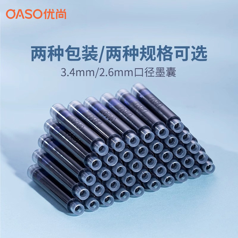 OASO优尚钢笔墨囊可替换便携一次性墨胆毕加索钢笔通用非碳素墨水蓝色黑色蓝黑色补充液小口径2.6mm/3.4mm