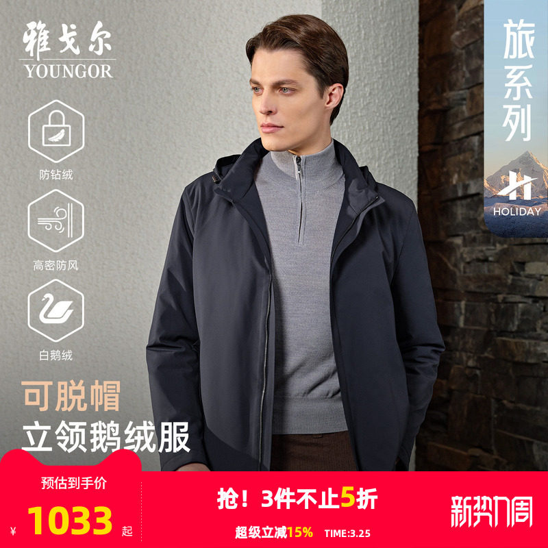 【轻暖鹅绒服】雅戈尔官方25秋冬新品保暖男士商务短款可脱帽外套