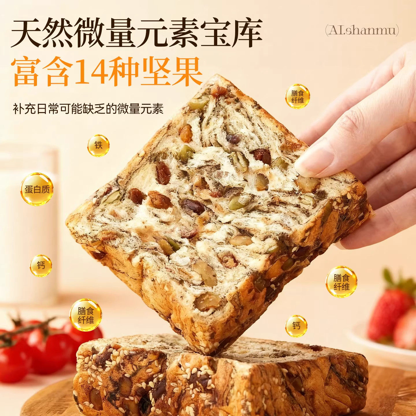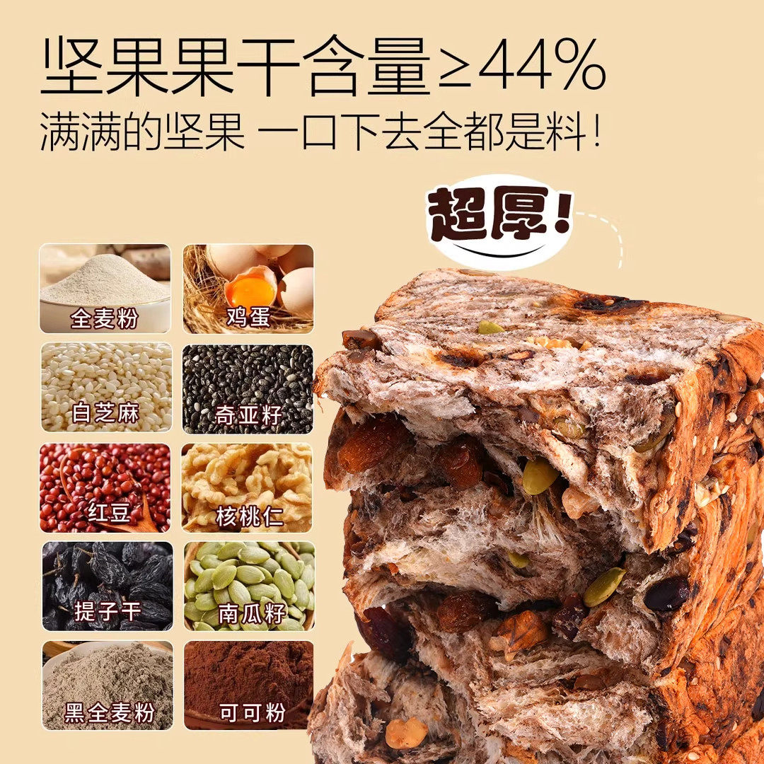 全麦坚果厚切吐司手撕面包饱腹代餐自律期速食零食早餐