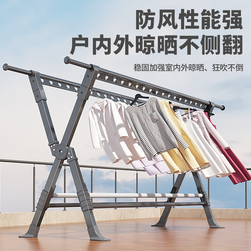 落地晾衣架折叠不锈钢家用阳台室内室外伸缩凉衣杆室内晒被子神器