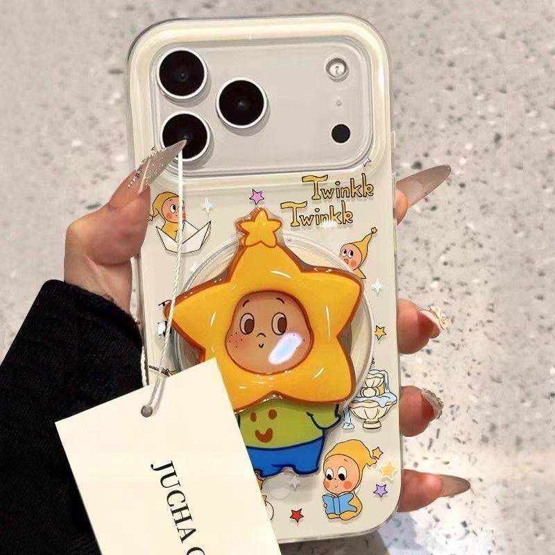 月亮星星人适用vivox200手机壳新款iPhone17保护套女款苹果17promax防摔壳pura80卡通外壳小米17带支架女款