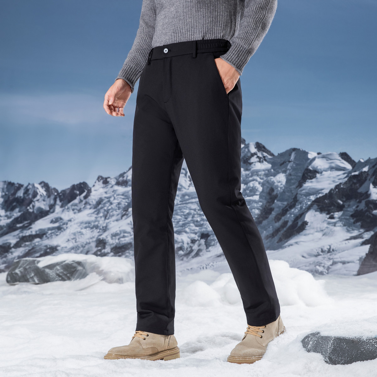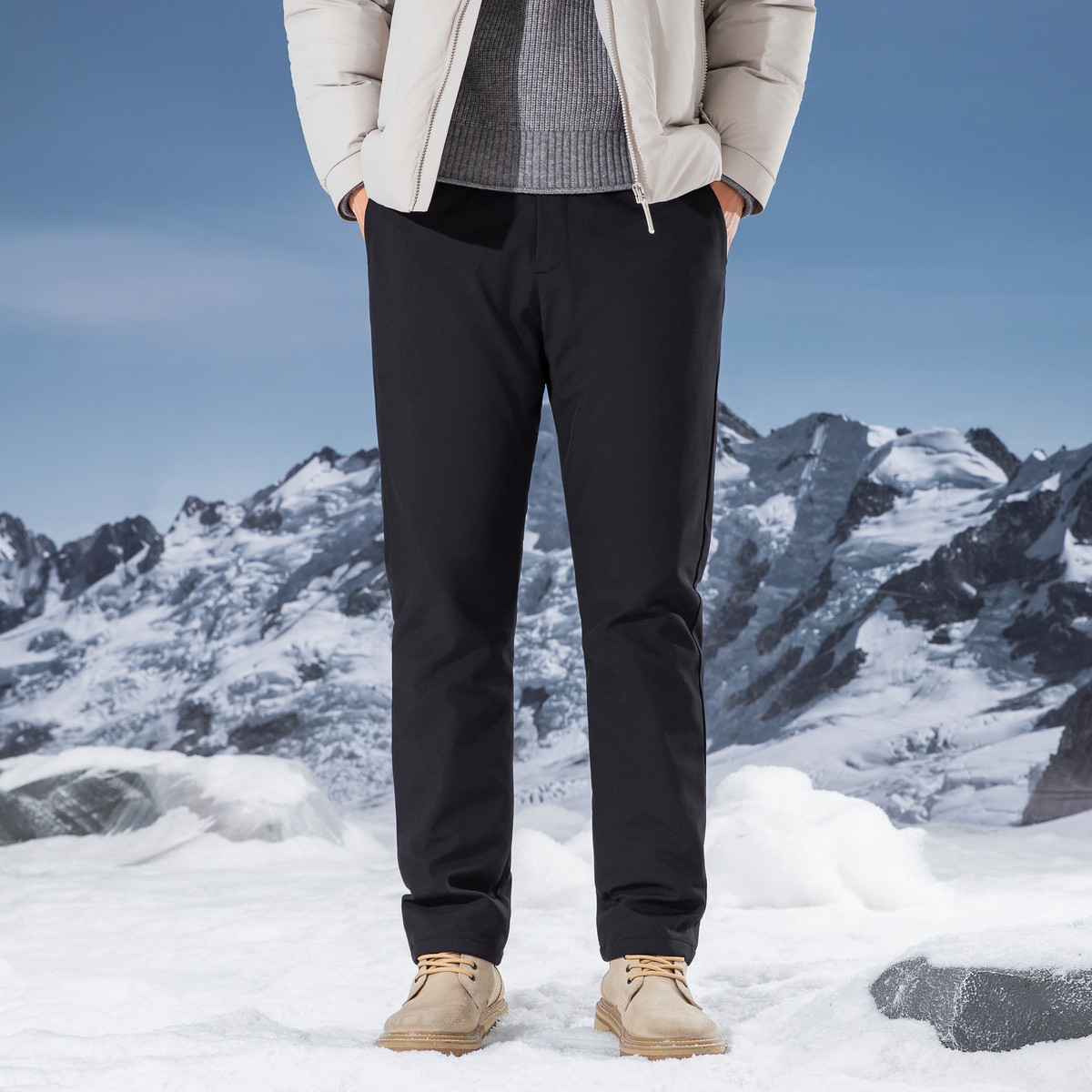 雪中飞2026春新款羽绒裤男士商务休闲时尚保暖西装裤版型直筒修身