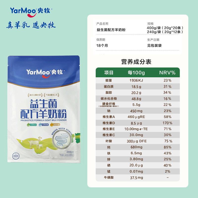 央牧益生菌羊奶粉成人学生儿童高钙羊奶粉早餐奶粉添加益生菌正品