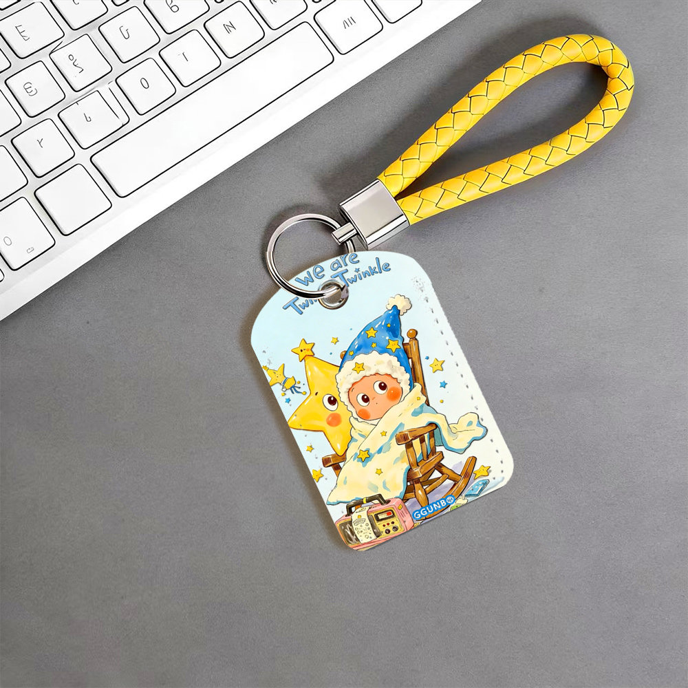 平面图摇椅上裹被子蓝帽子星星人感应卡门禁水滴小卡套钥匙扣迷你NFC感应小区公交卡交通电梯IC卡防摔保护套