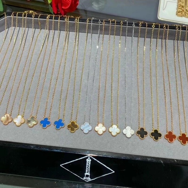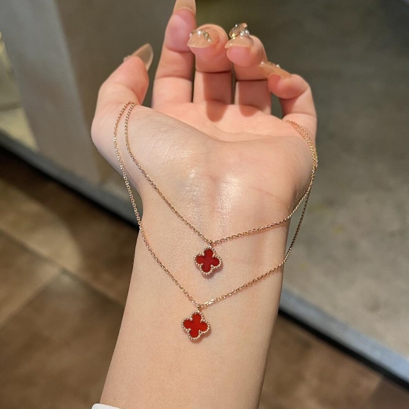 四叶草项链女高版本18K玫瑰金玛瑙贝母锁骨链轻奢小众毛衣链叠戴